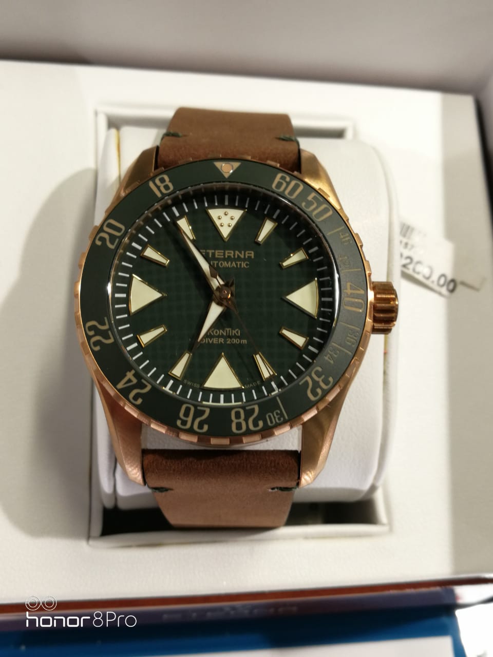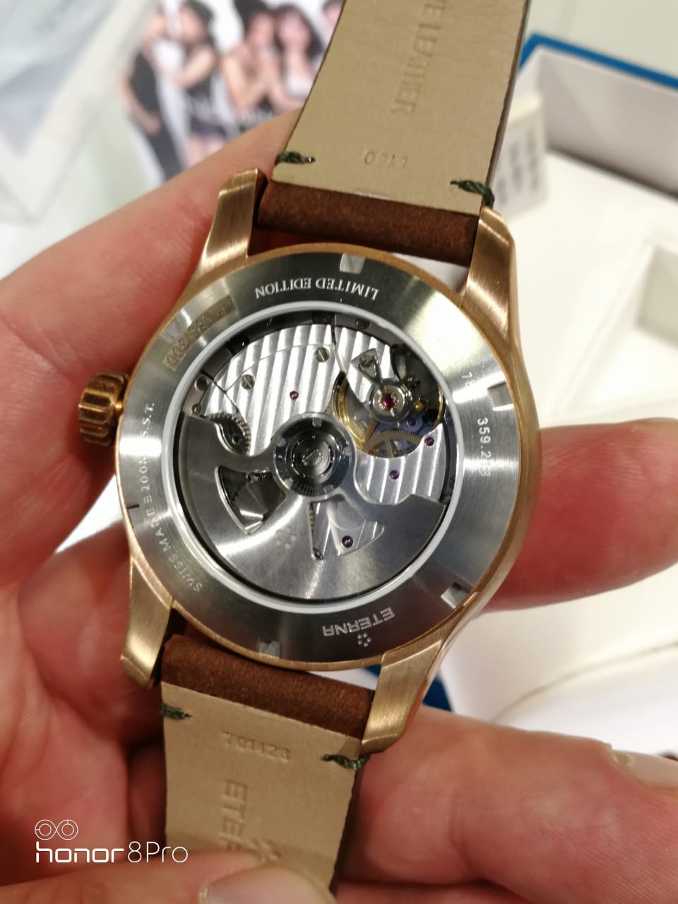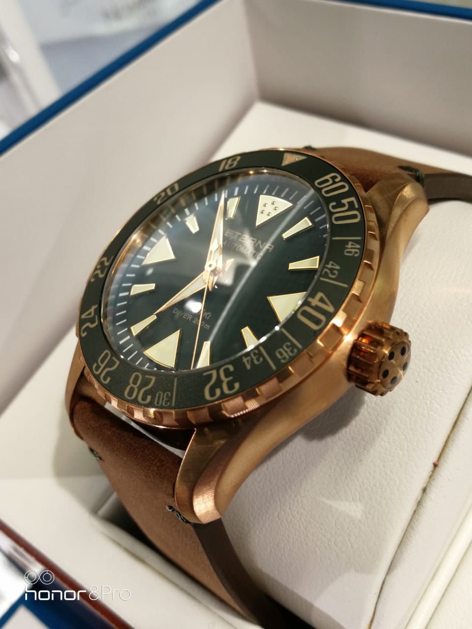 В продаже редкая бронзовая лимитка от Eterna, много писать не буду, все на форуме и так знают про этот бренд.