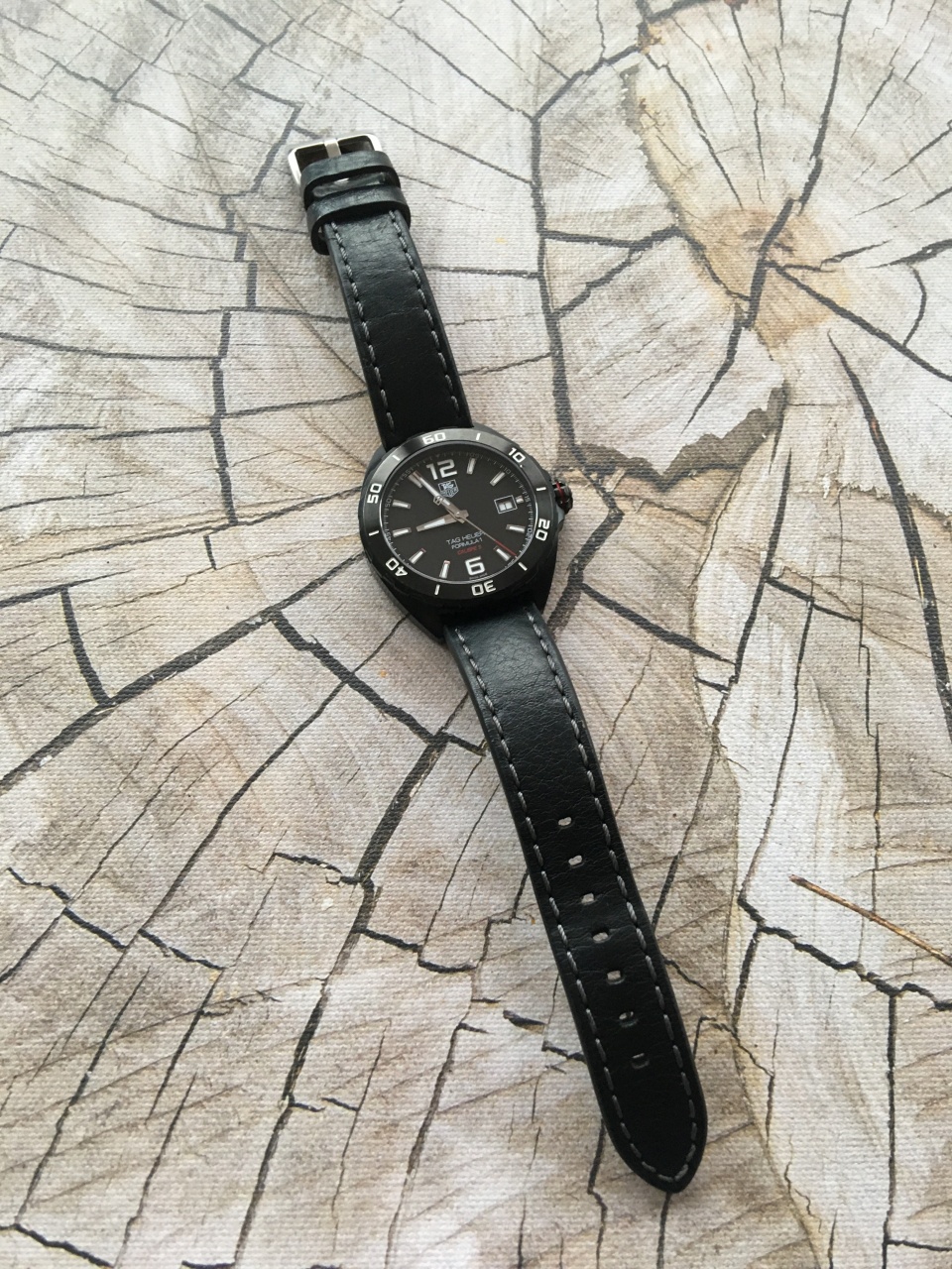 В наличии замечательные повседневные часы TAG Heuer Formula 1 Full Black Edition WAZ2115.FT8023 с установленным механизмом TAG Heuer Calibre 5 (ETA 2824-2/Selita SW200) с автоподзаводом. Частота баланса 28 800 полуколебаний. Запас хода 38 часов. В комплекте: часы, шкатулка, а также качественный ремешок из натуральной кожи в подарок! На часах в районе 11 минут на безеле есть мелкая коцка, а также на стекле точка в районе 8 минут, в глаза не бросается.
