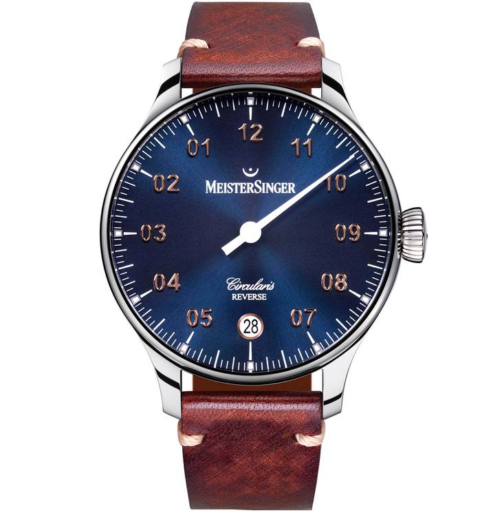 В рамках только что завершившейся Dubai Watch Week, немецкая мануфактура MeisterSinger представила модель Circularis Reverse – часы, созданные специально для арабского мира. Раз уж все тексты в регионе написаны справа налево, почему бы не предложить клиентам заодно считывать время «против часовой стрелки»? К тому же, на геометрии циферблата это никак не сказывается: на ярко-синем фоне расположились золотые цифры, белая минутная шкала, крупная заостренная стрелка, а также окошко даты на отметке «6 часов». Корпус изделия диаметром 43 мм привычно выполнен из стали.