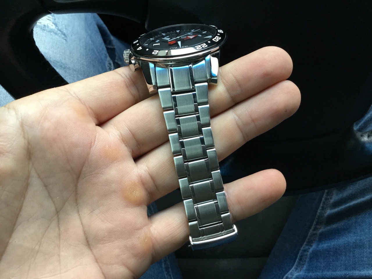 Механизм 5м85 с функцией gmt и индикатором запаса хода. Запас хода 6 месяцев . Стёкла сапфир . Заводная головка завинчивающаяся . Часы в хорошем состоянии , коробка с документами в комплекте .