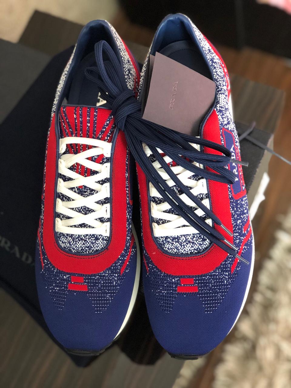 2019-SALE!!!PRADA новые мужские кроссовки,цвет синий/красный (45 размер)