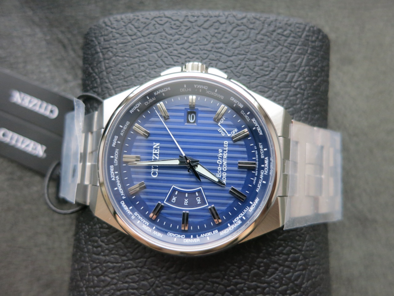 Кварцевые часы с механизмом Eco-Drive H145 (заряжаются от любого источника света) с функцией энергосбережения Power Reserve. Мировая радиосинхронизация времени (5 зон). Вечный календарь до 2100 года. Мировое время (26временных зон). Летнее/зимнее время. Функции предупреждения о низком уровне заряда и предотвращения перезарядки. Антимагнитная защита PERFEX, датчик удара и автоматическая коррекция положения стрелок. Внутренний безель с разметкой часовых поясов. Стальной корпус с выступами для защиты заводной головки. Стальной браслет с раскладывающаящейся застежкой и кнопками раскрытия. Сапфировое стекло. Синий циферблат с вертикальной полоской. Накладные металлические метки. Отображение даты в позиции 3 часа. Люминесцентные стрелки. Корпус диаметром 42 мм и толщиной 10 мм.Водозащита WR100 / 10Bar / 333ft. Производство и сборка: Япония.