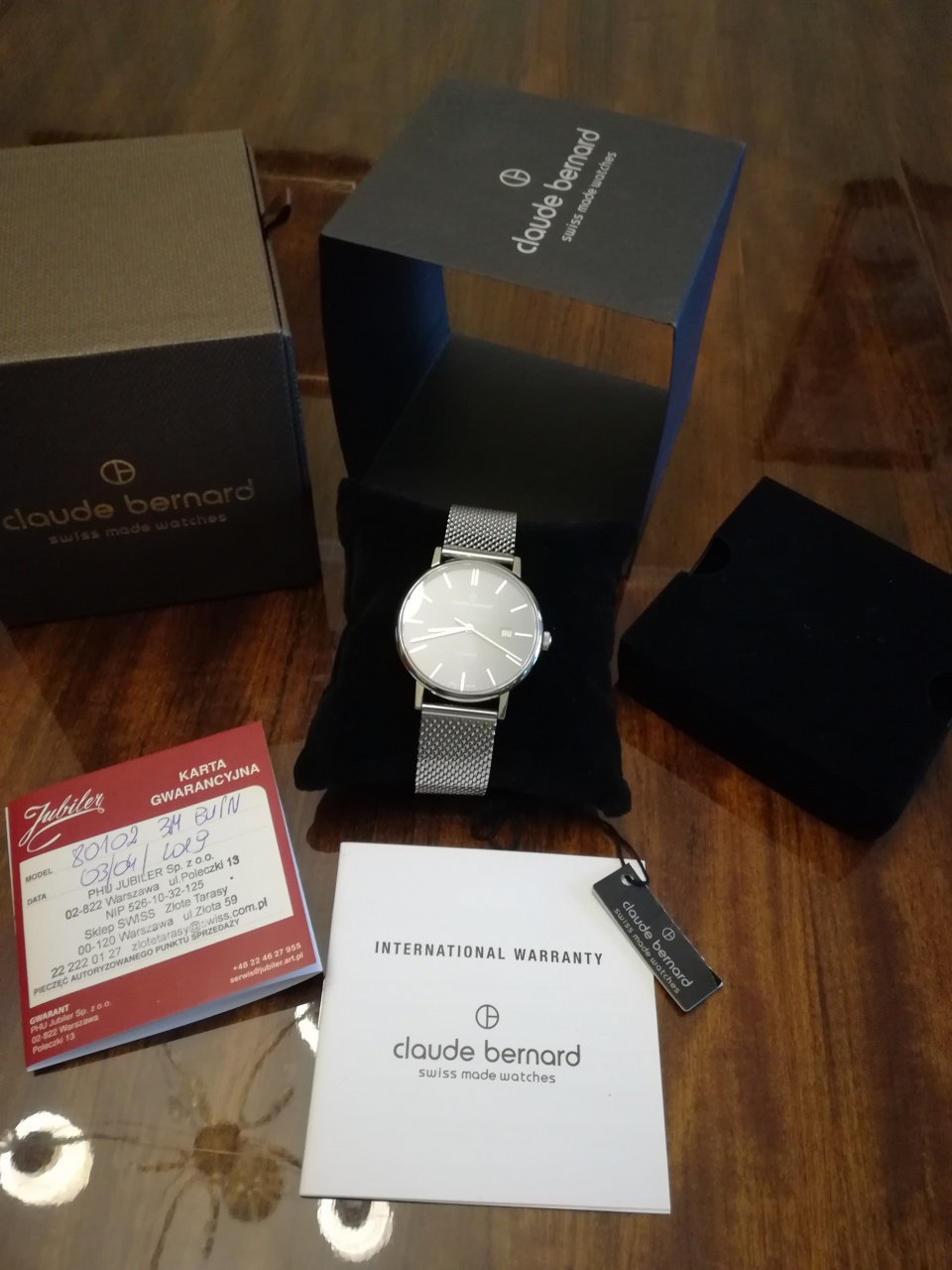 Claude Bernard 80102 3M BUIN - мужские/унисекс механические наручные часы. Корпус среднего размера (40,5 мм) и выполнен из нержавеющей стали L316. Модель имеет устойчивое к царапинам сапфировое стекло, металлический миланский оригинальный браслет, серый в оттенки синего циферблат. Заднее стекло обзора механизма. Калибр механизма: Selita S200. автоподзавод, запас хода 48 часов. Водозащита 3 АТМ. Дополнительные функции и особенности: отображение числа. Полная заводская комплектация: оригинальные часы, фирменная коробка, инструкция, сервисная книжка. Производство Швейцария - завод EDOX. Swiss made. Состояние часов превосходное, нигде ничего. Часы находятся в Москве. Интересует только продажа. цена на стоке в РФ порядка 535EUR, причем с меш-браслетом данную модель в РФ в продаже я не нашел.