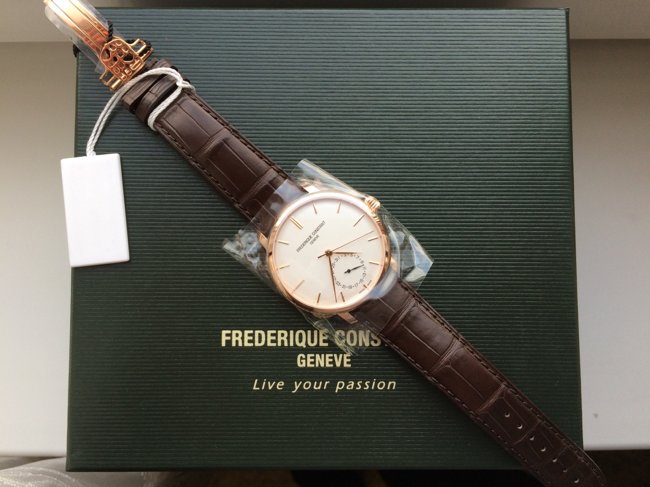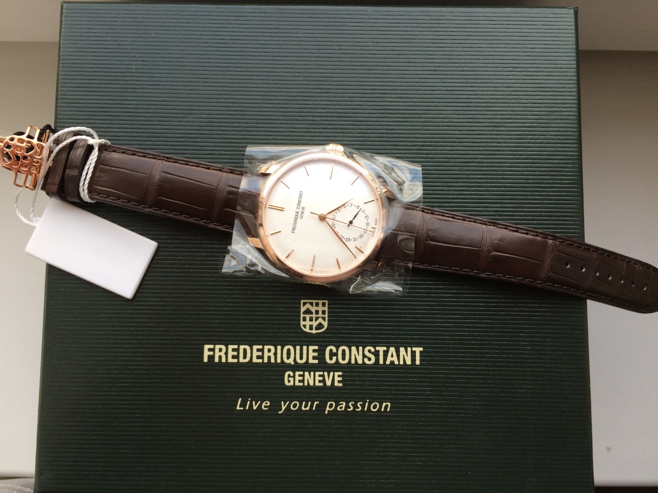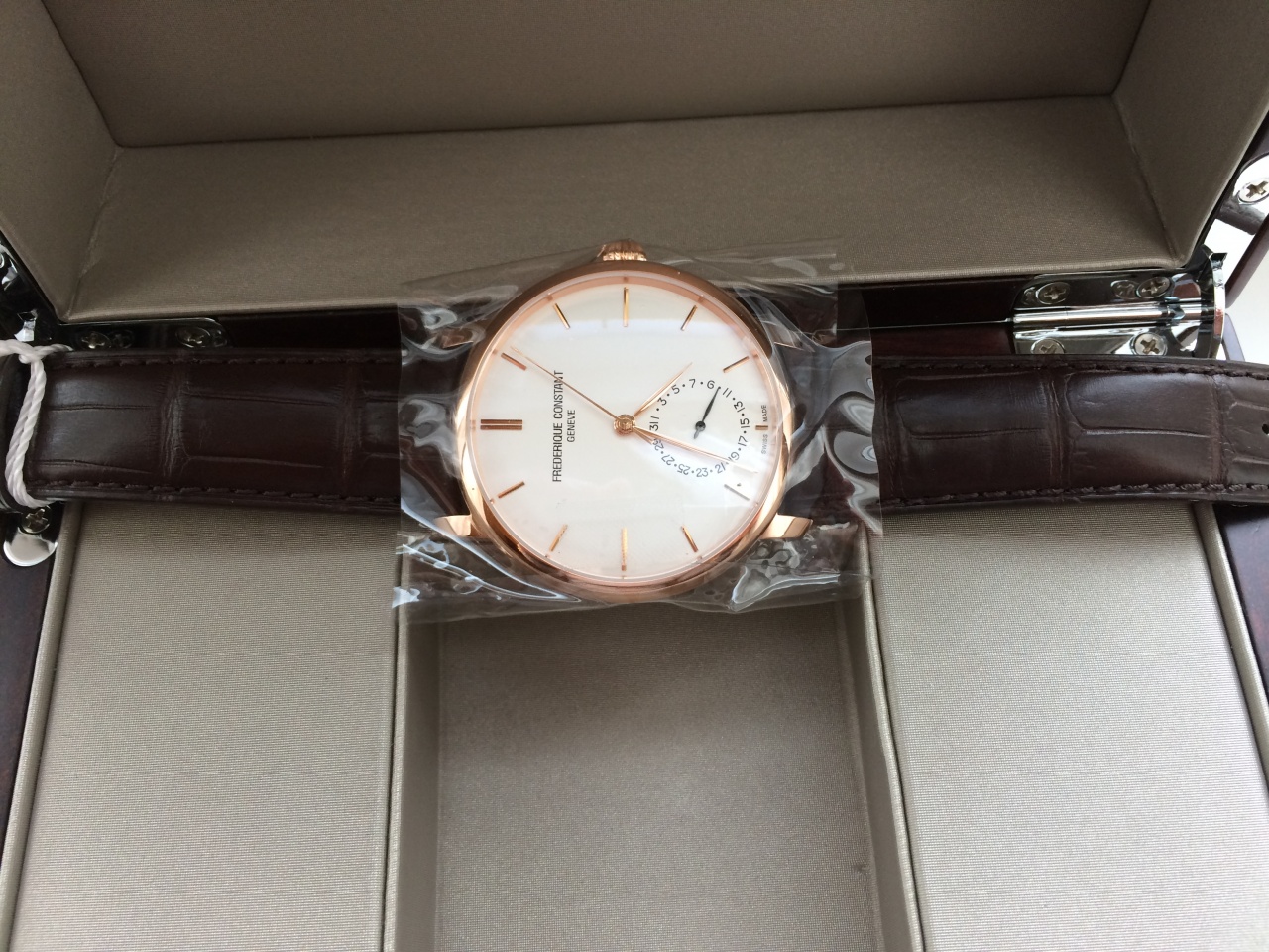 Швейцарские мужские часы. Коллекция Frederique Constant Manufacture Slim Line. Классический характер и продуманный дизайн станут стильным решением для дополнения вашего делового стиля. Тип механизма: механический с автоподзаводом.Частота 28800 полуколебаний в час. Запас хода 42 часа. Корпус: сталь с розовой позолотой 10мкм. Циферблат: серебристый. Браслет из кожи аллигатора коричневого цвета застежка клипса. Водозащита: 30WR. Стекло: сапфировое выпуклое. Календарь: число.Диаметр корпуса 42 мм, толщина 11,7 мм