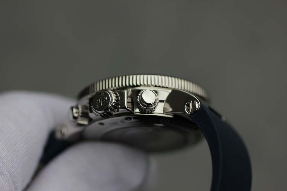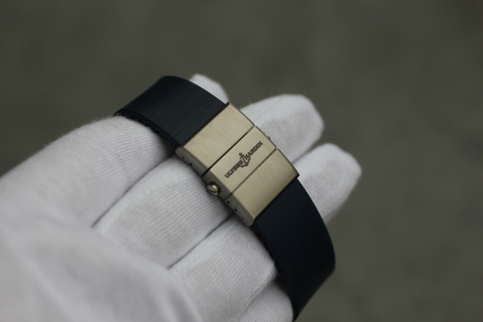 Удобный и, в то же время, стильный хронограф для мужчин. Популярность классических решений в часовой индустрии обусловлена универсальностью линии Marine от Ulysse Nardin, простотой и представительностью данного стиля. Функциональность хронографа придется по вкусу людям спортивным, предпочитающим активный образ жизни. Часы выполнены в корпусе из нержавеющей стали размером 41 мм. Толщина корпуса составляет 14,5 мм. Механизм с автоматическим подзаводом работает от амплитуды движения руки. Часы предназначены для того, чтобы в них плавали и имеют водонепроницаемость 200 м. Циферблат закрыт прозрачным антибликовым стеклом из сапфирового хрусталя высокой прочности, благодаря чему обеспечивается максимальная защита от сколов и механических повреждений. Для изготовления задней крышки корпуса часов также применяется сапфировое стекло, благодаря чему обеспечивается обзор на работу часового механизма. Часы укомплектованы каучуковым ремешком с раскладывающейся застежкой из стали, превосходно дополняющим эксклюзивный образ модели. Хронограф. Запас хода до 42 часов. Задняя крышка прозрачная.