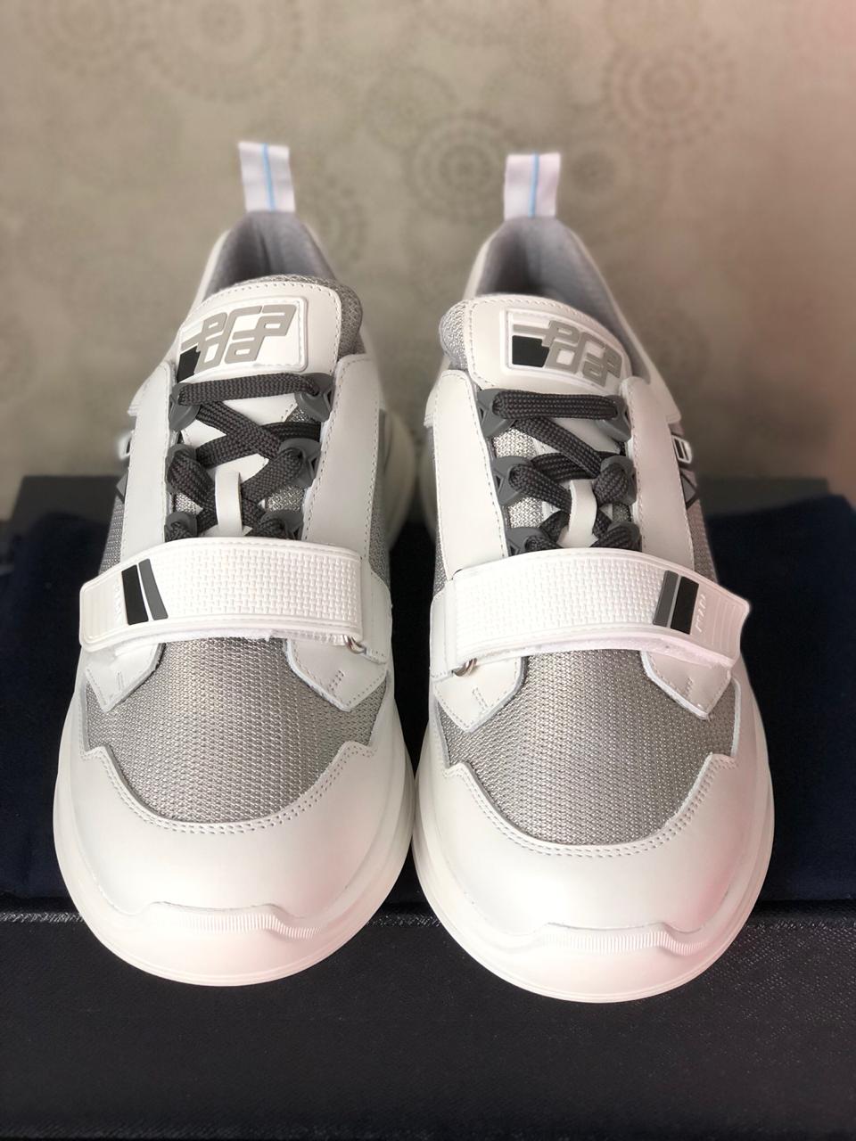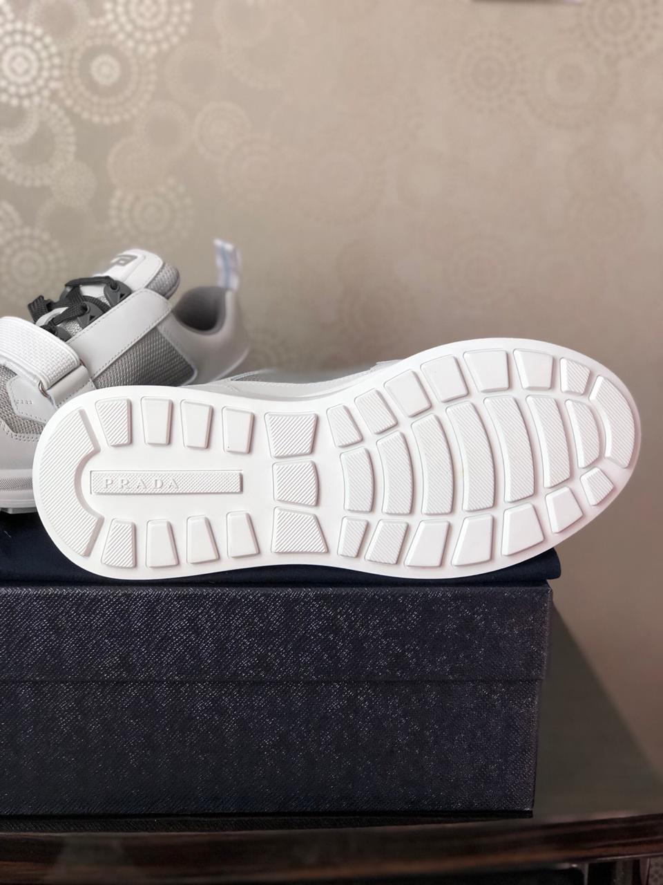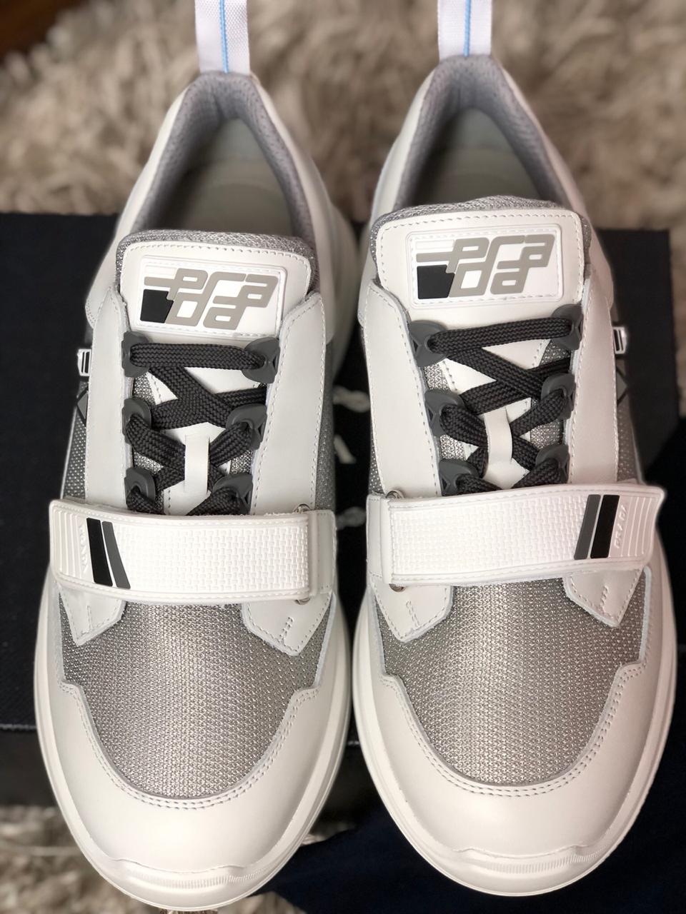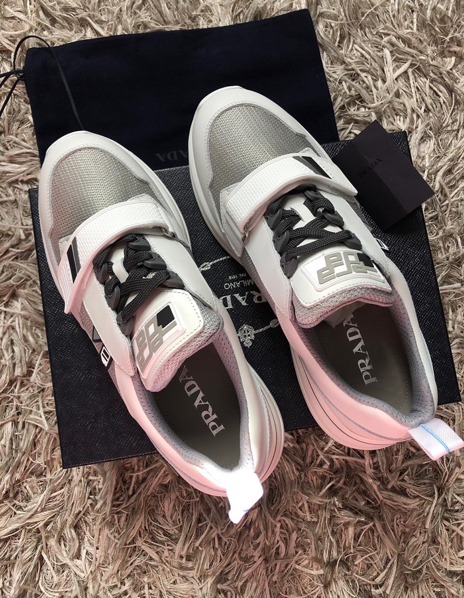 В продаже,новые мужские кроссовки от известного дома моды PRADA.Итальянский бренд активно использует при создании моделей грубые технические материалы,футуристичные резиновые нашивки-логотипы,графичные принты.Так,модный дом сезон за сезоном удивляет публику своими антиутопичными коллекциями.Подтверждение тому-кроссовки Mechano белого и серого цвета.Модель изготовлена из кожи со вставками из нейлона имеет петлю для подтягивания сзади,внуровку спереди,застёжку на липучке,верх в сетку,кожаные вставки и плоскую резиновую подошву.