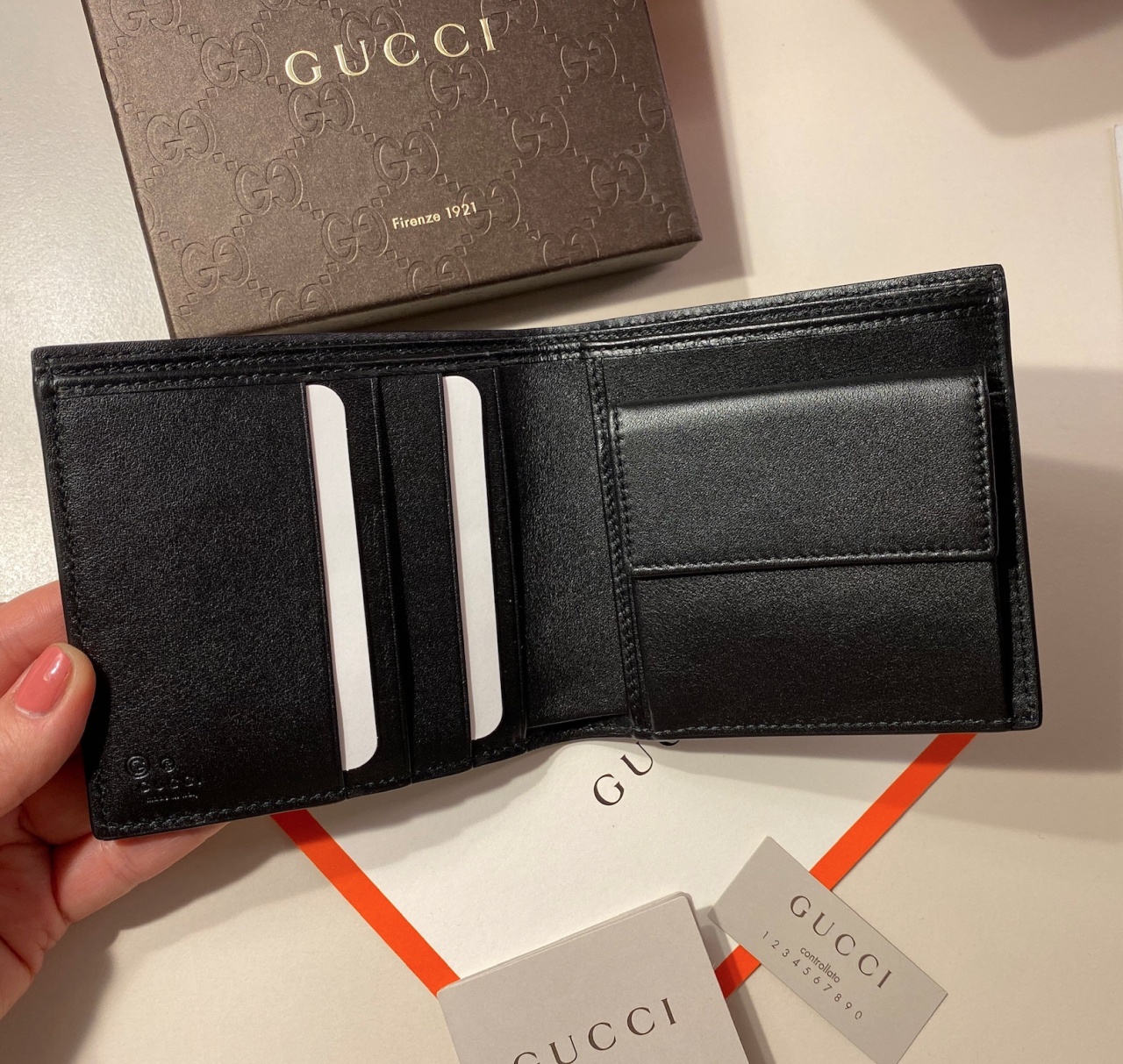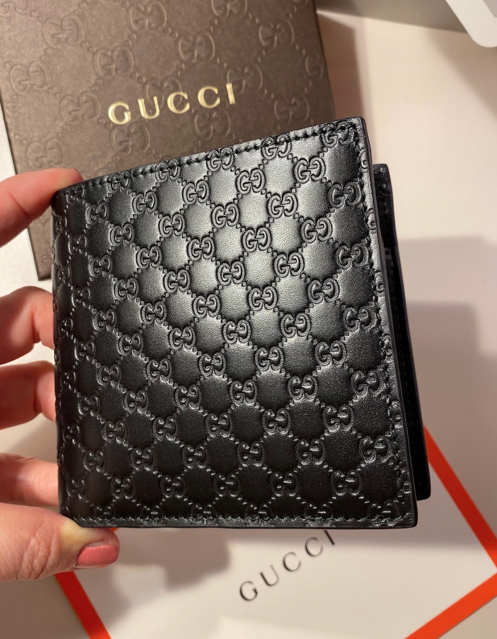 GUCCI мужской бумажник. Новый. Кожа с тиснением Signature GG. Цвет: чёрный