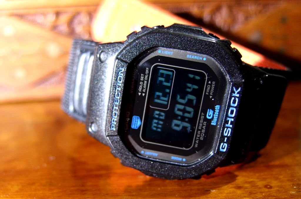 Юбилейная модель серии 5600. Серия, можно сказать, культовая, а вот модель с некоторыми зачатками «мозга». « ̶С̶л̶а̶б̶о̶у̶м̶...чуть-чуть умные» часы с прибамбасами в виде блютутх-соединения со смартфоном и оповещениями о новых сообщениях (что точно есть) и, вроде бы, должны быть еще оповещения о чем-то, но сие есть тайна непознанная. До полноценных «умных», конечно, не дотягивают. Детский сад, старшая группа.