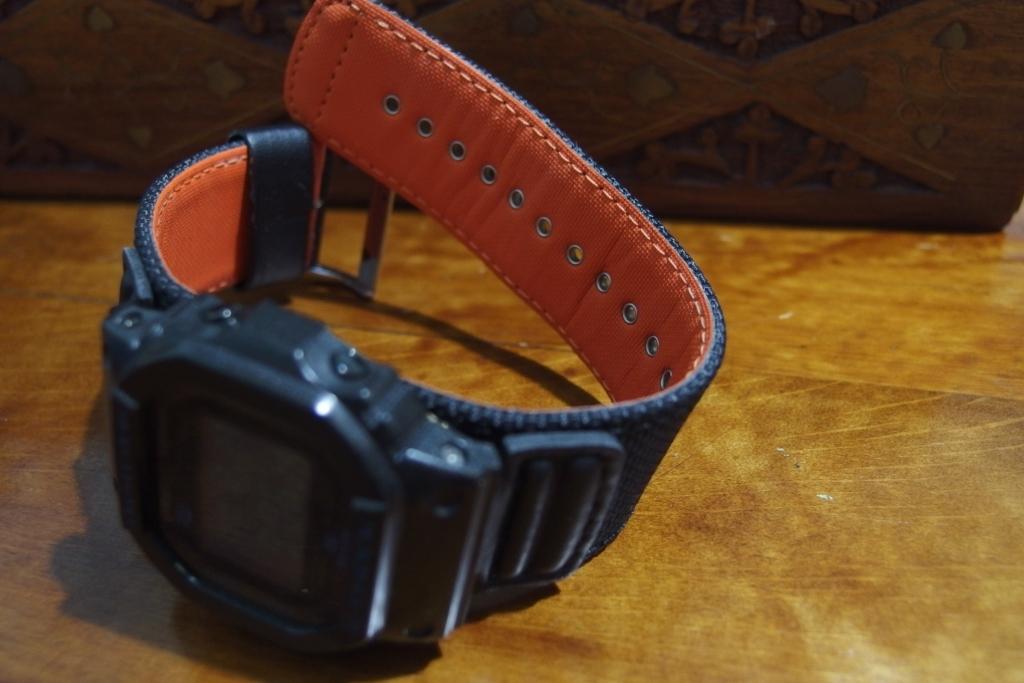 Судить о штатном ремне «Мормона» не могу, т.к. практически не носил его. В связи с особенностями материала корпуса, часы оставляют следы на руке. Поэтому, практически сразу, они были пересажены на напульсник, изготовленный по заказу. Еще они немного побыли на каучуке, т.к. хотелось понаблюдать на воздействие морской воды на корпус.