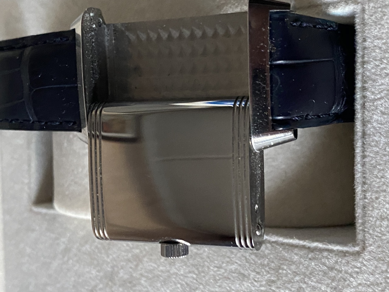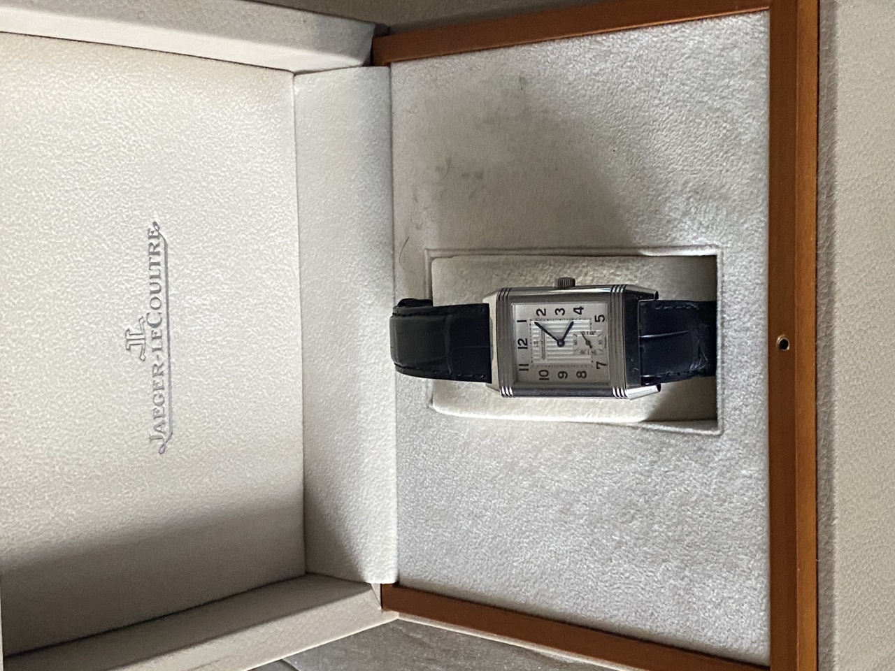 Продаю нестареющую рафинированную костюмную классику от мануфактуры Jaeger-LeCoultre - Reverso Grande Taille ref. 270.8.62. Размер 26 x 42 мм, подойдут как мужчине, так и женщине под классический и деловой гардероб. Куплены в московском бутике марки в 2014 году, единственный владелец. Носились мало и аккуратно, следы носки видны только с помощью увеличительного стекла. Не ремонтировались, не вскрывались, не полировались. Ход точный. Установлен оригинальный ремешок темно-синего цвета из крокодила, практически в идеале, замены не требует. Бонусом вообще не ношеный коричневый ремешок, крокодил. Все коробки и документы в наличии.