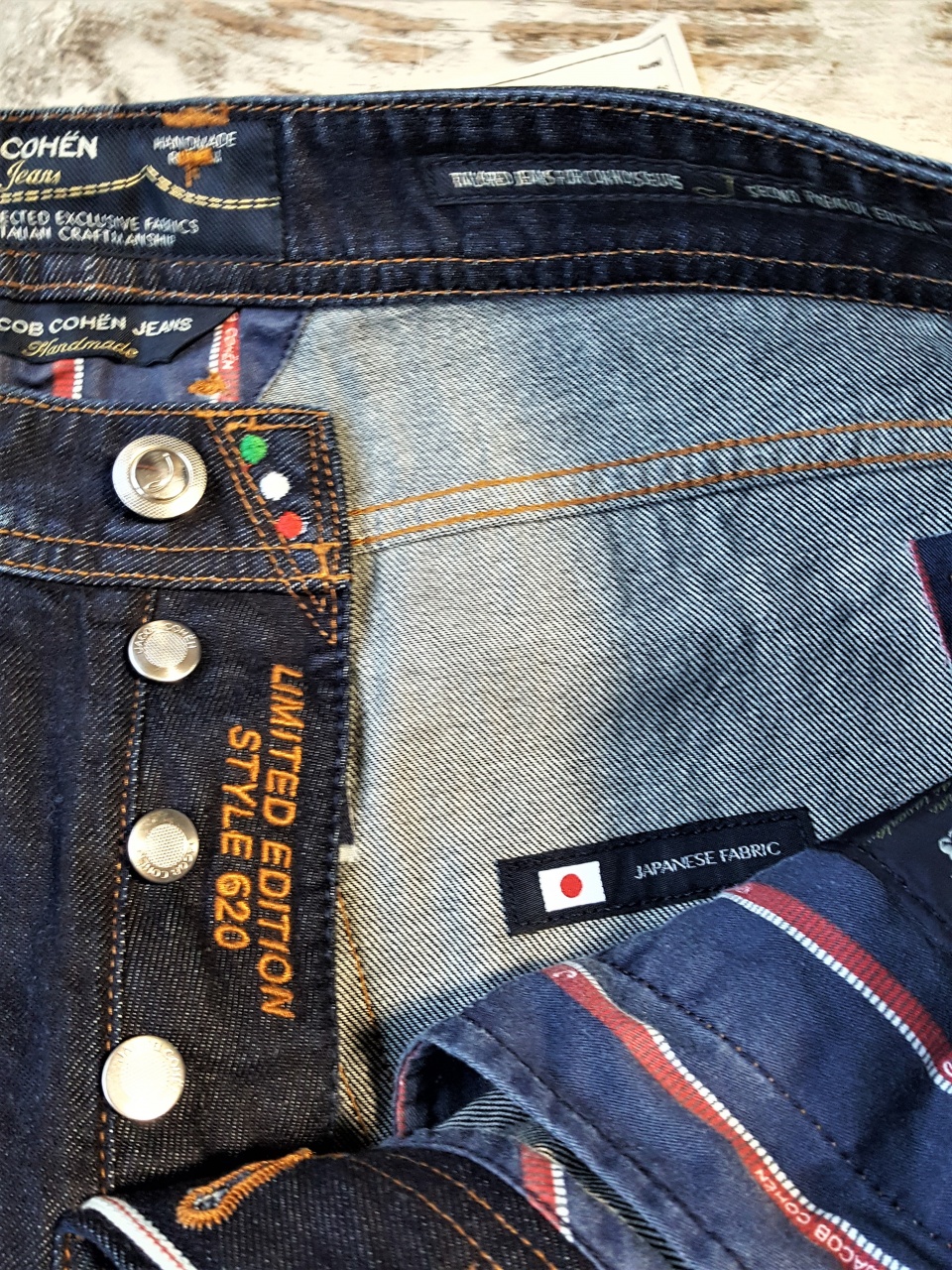 Модель: 620 LTD, прямого кроя, застёгиваются на фирменные пуговицы из серебра с логотипом Jасоb Соhеn.