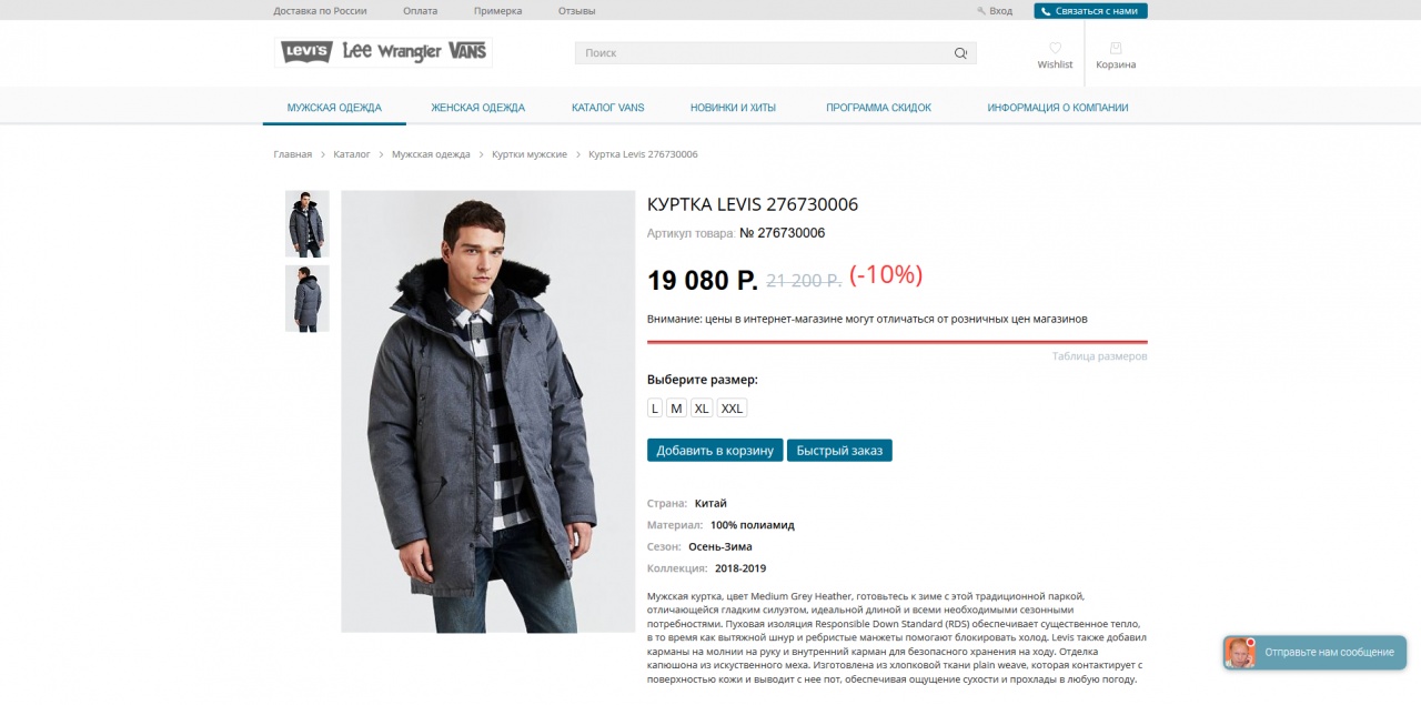 Новая пуховая парка Levis