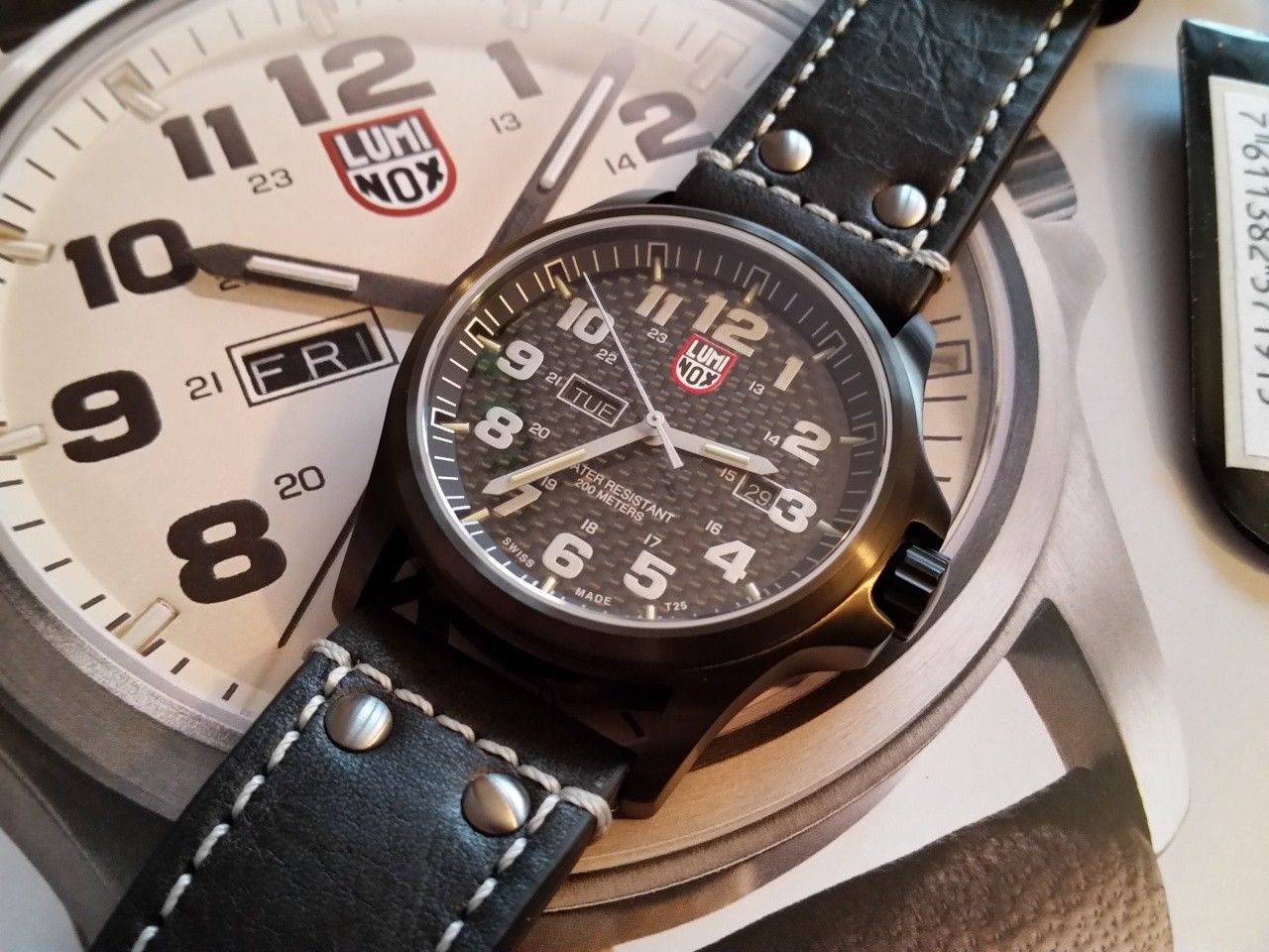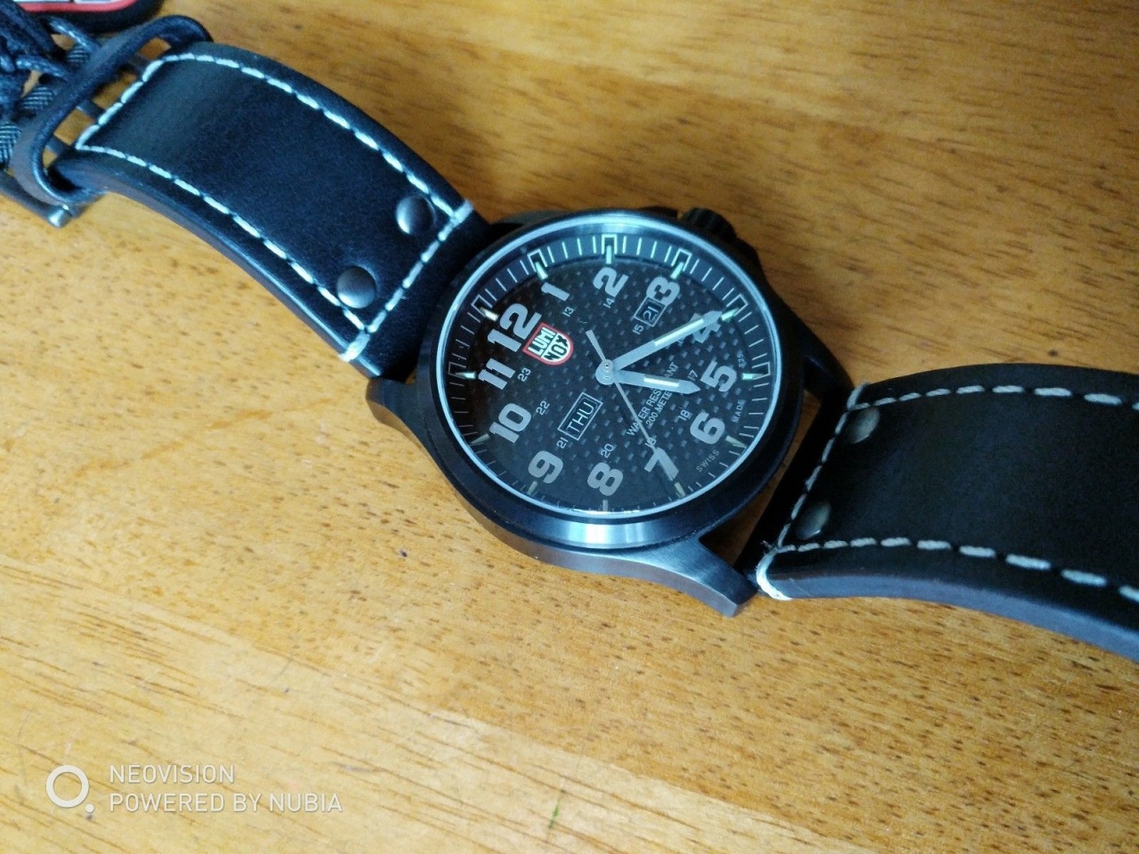 Разработчики Luminox применили в часах серии Field удачную контрастную разметку циферблата в нескольких вариантах расцветки: от черно зеленой в часах с ремешком цвета сафари из грубой кожи до темно синей с прочным замшевым ремешком серого цвета.