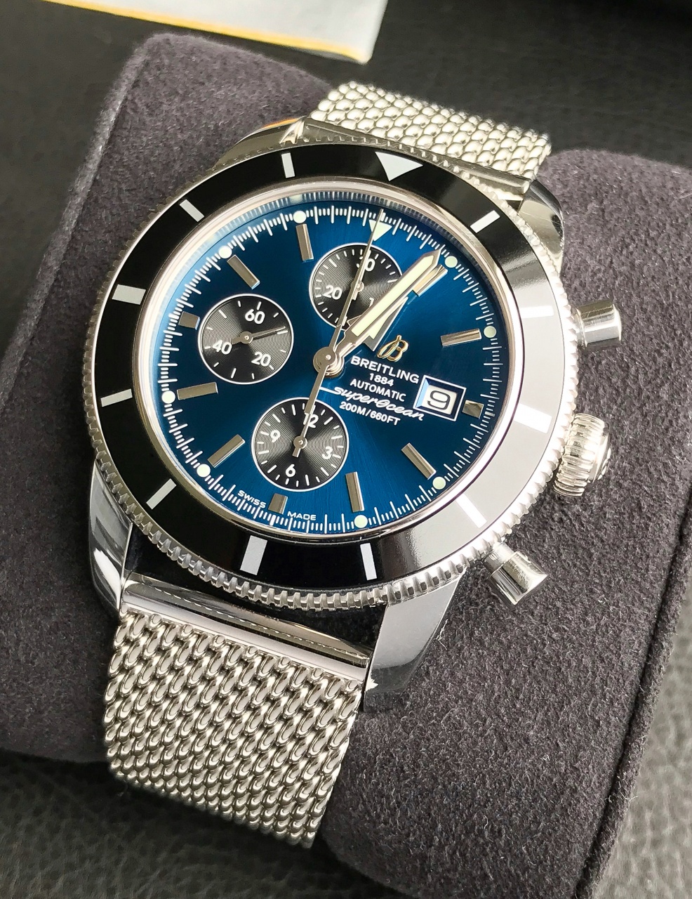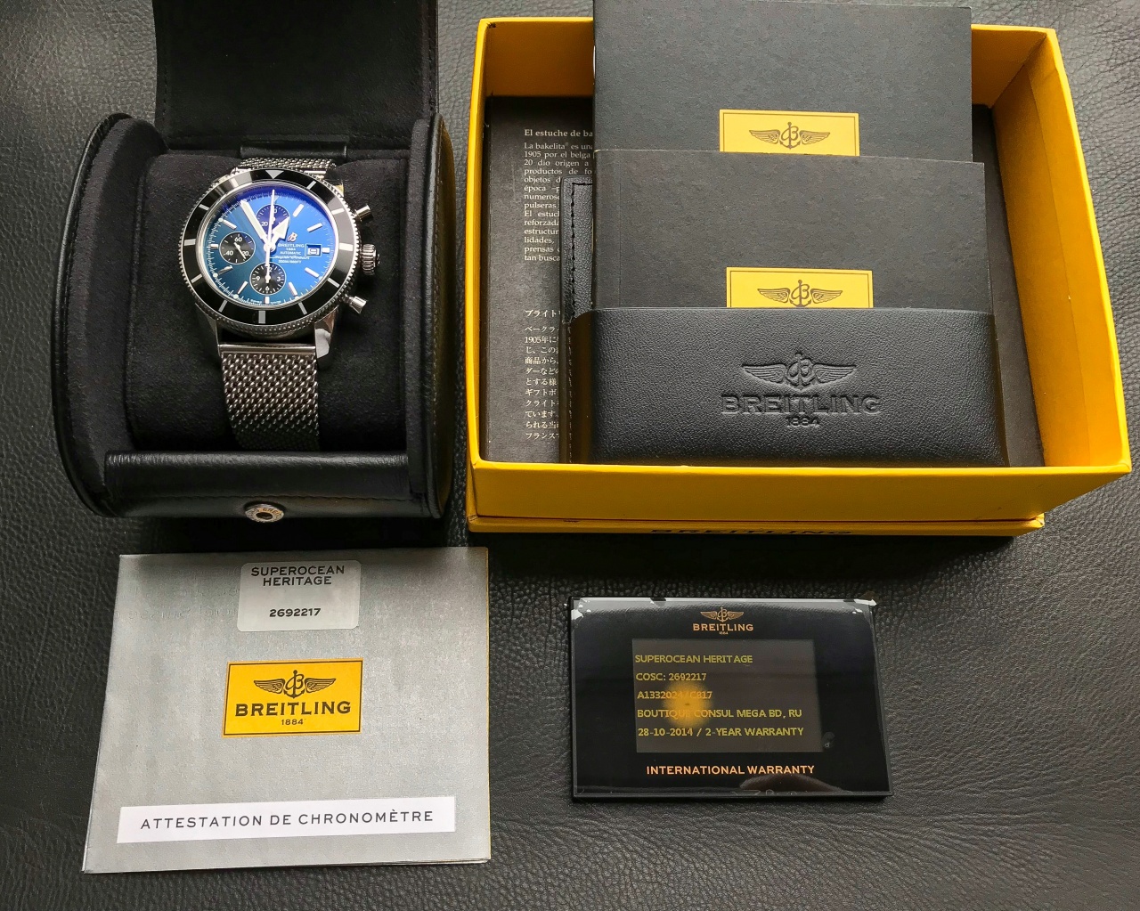 BREITLING Superocean Heritage Chronograph A13320 46mm. Стальной браслет. Синий циферблат
