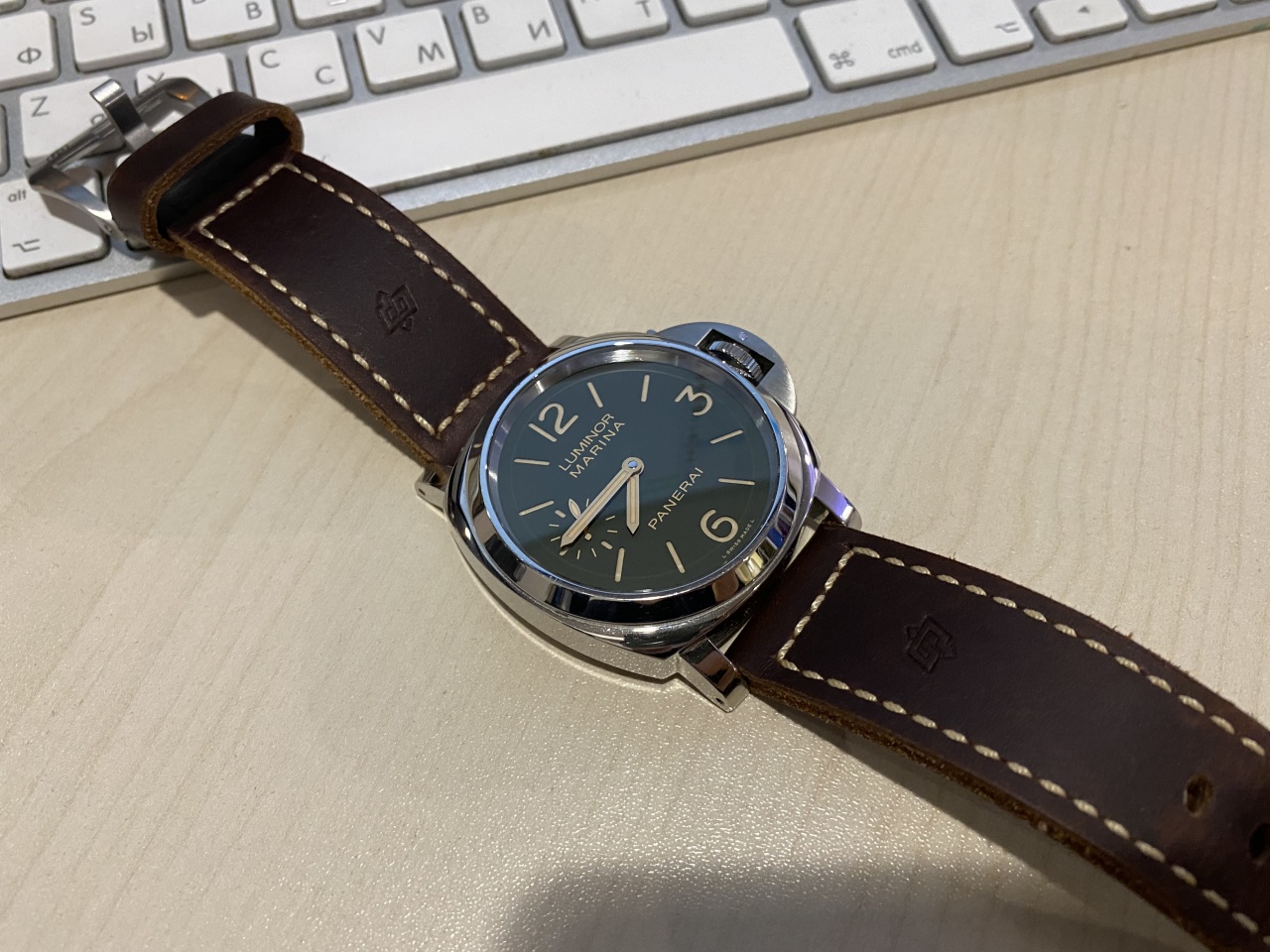PAM911 поставляется на коричневом ремешке Ponte Vecchio, а также в комплекте имеется темно-коричневый OEM резиновый ремешок с надписью Panerai, который может быть установлен на часы с помощью входящей в комплект отвертки.