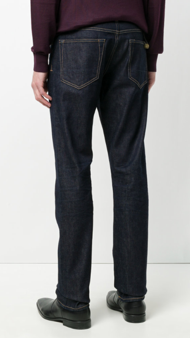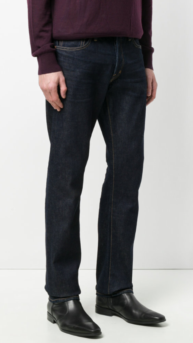 В продаже,новые мужские джинсы прямого кроя от американского люкс-бренда TOM FORD.Изготовлены из лёгкой,но плотной джинсовой ткани тёмно-синего цвета.Высококачественный натуральный хлопок,с добавлением небольшого количества укрепляющих синтетических волокон-это комфортная,"дышащая" ткань.Умеренная эластичность позволяет модели хорошо садиться по фигуре и в то же время отлично держать форму.