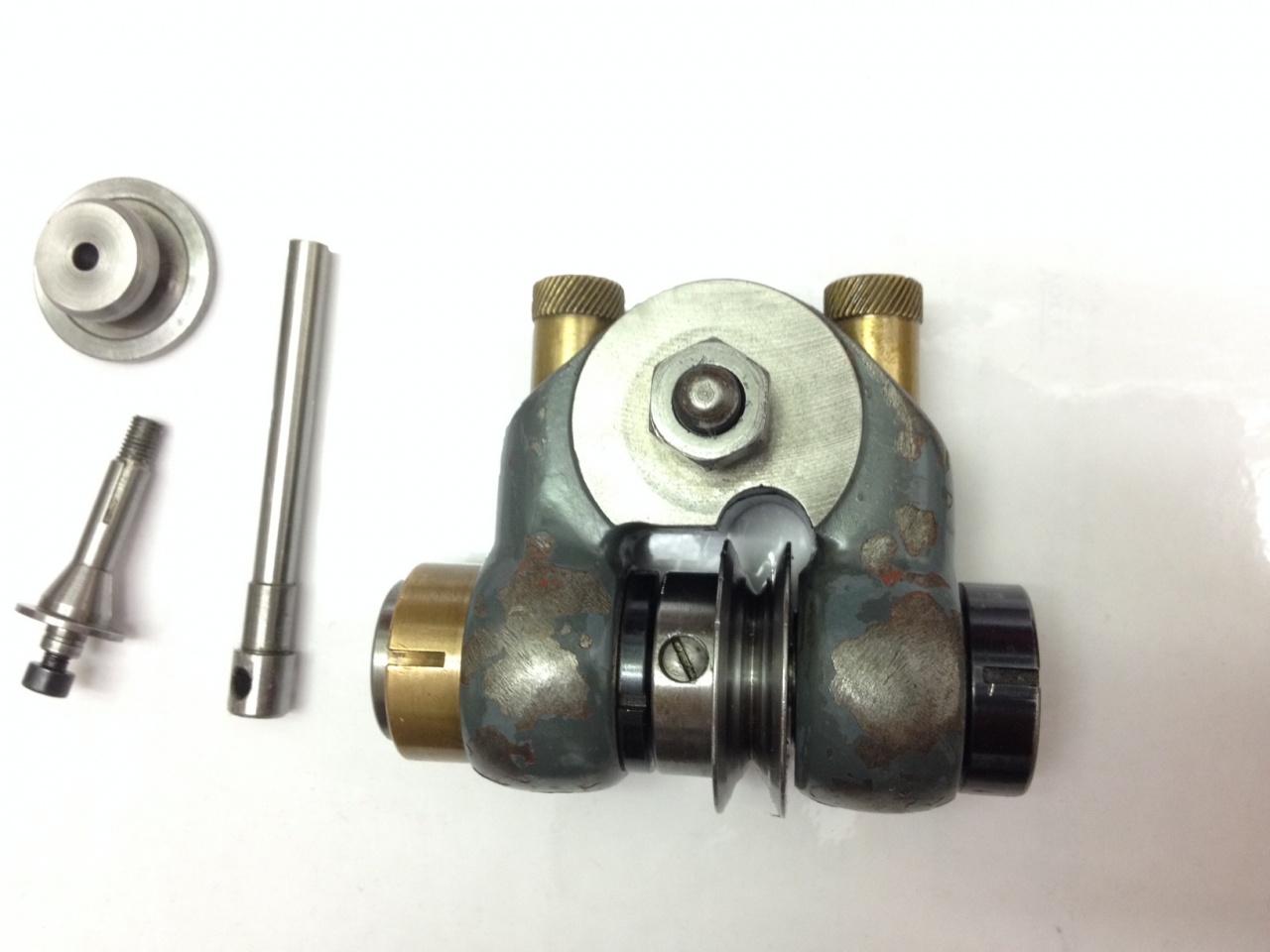 Шлифовально-фрезерное приспособление. Может быть использовано для работы с шлифовальными кругами, для шлифовки или декоративного лучевания, а так же с дисковыми и модульными фрезами. Шпиндель под цанги и оправки B-6. Если использовать с цангами, то можно зажимать и концевые фрезы.
