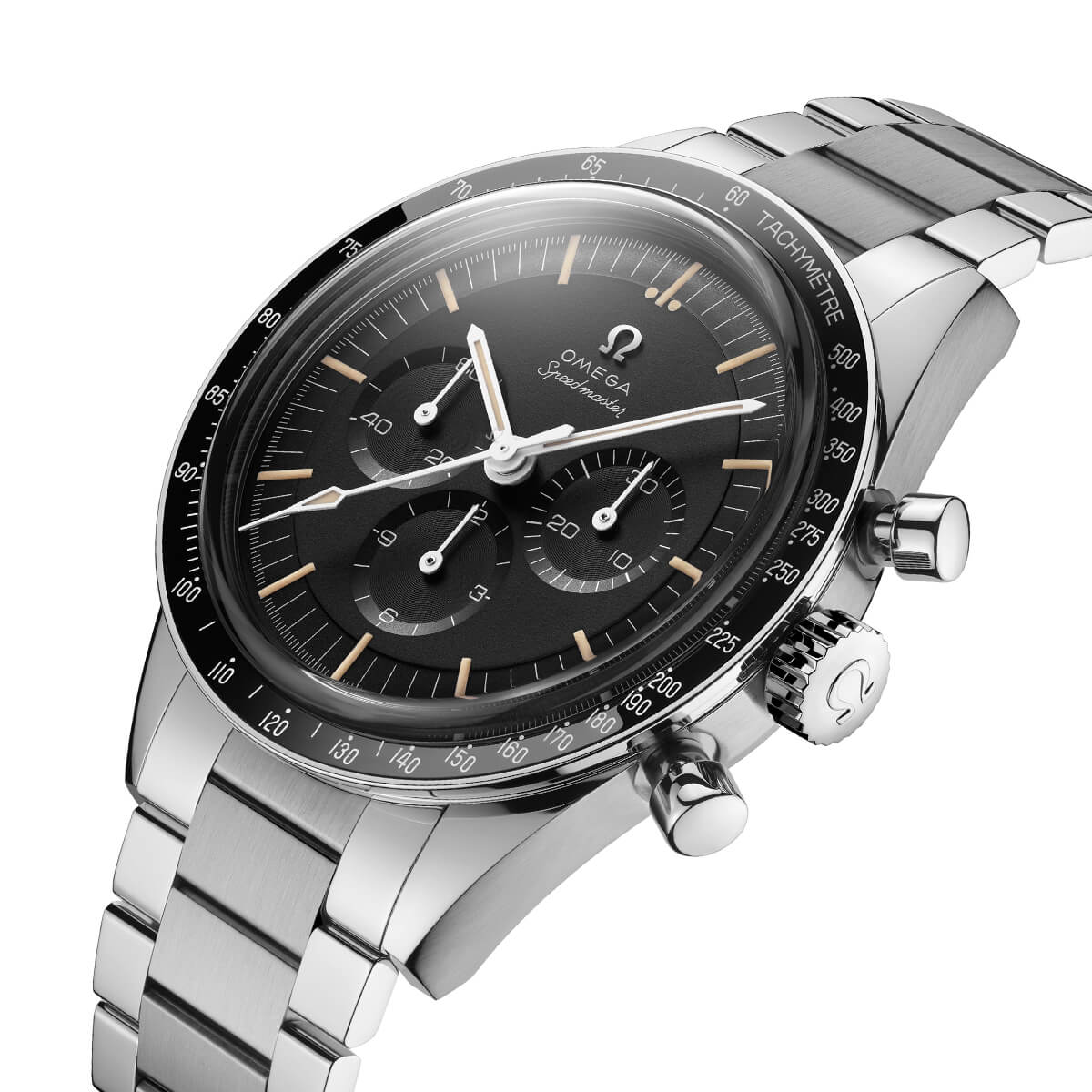 Его диаметр составляет 39,7 мм – такой размер часто используется в винтажных версиях Speedmaster, в частности, в современном ремейке модели 1959 года CK2998 и в модели “First Omega in Space”, воспроизводящей облик часов, которые были с астронавтом Уолтером Ширрой на борту космического корабля “Меркурий-8” в октябре 1962 года.