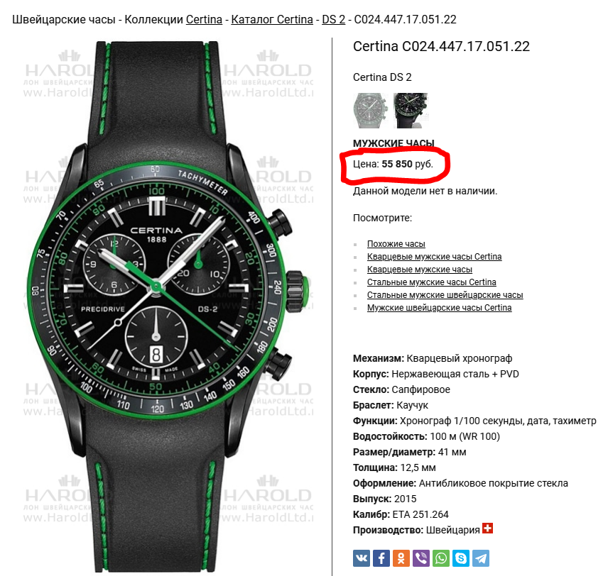 CERTINA DS-2 Precidrive C024.447.17.051.22. Черно-зеленый кварцевый хрон / Каучук / d=41mm - Часовой форум Watch.ru