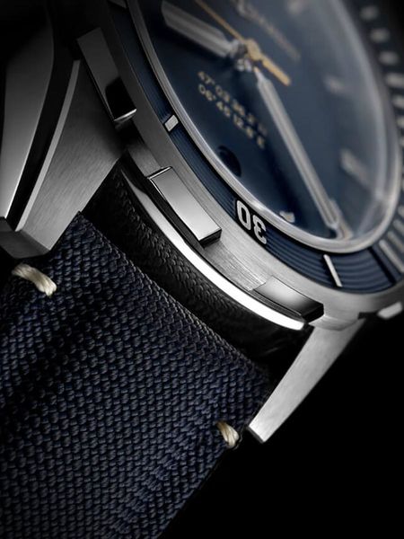 Ремешок: Парусиновый синего цвета со стальной застёжкой