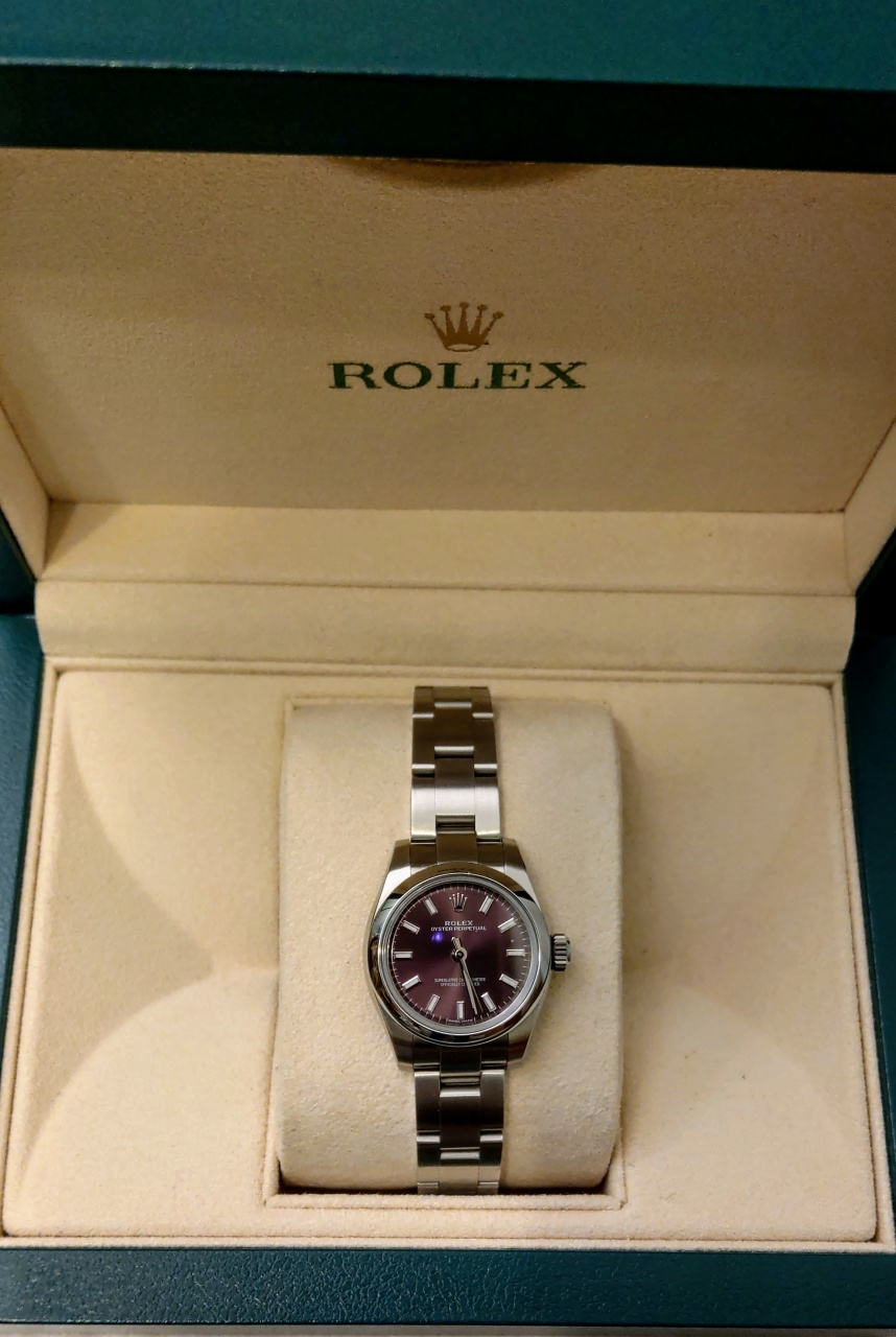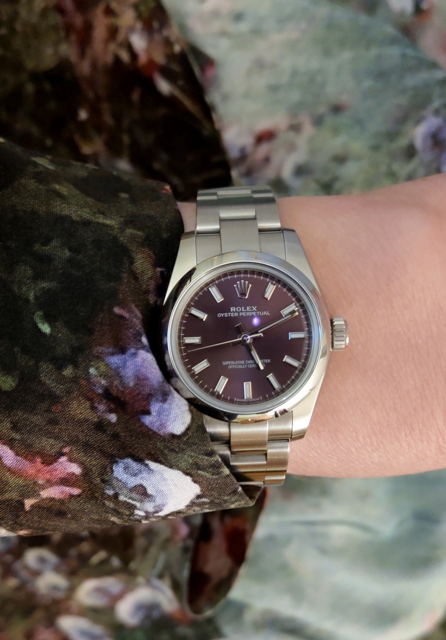 Женские часы Rolex Oyster Perpetual, 26 мм, цвет red grape. На гарантии, коробка и документы в наличии. Отличный подарок на Новый год.