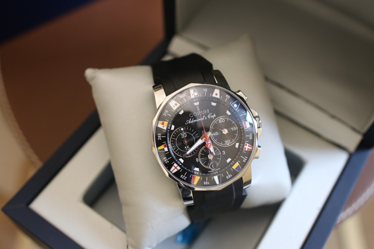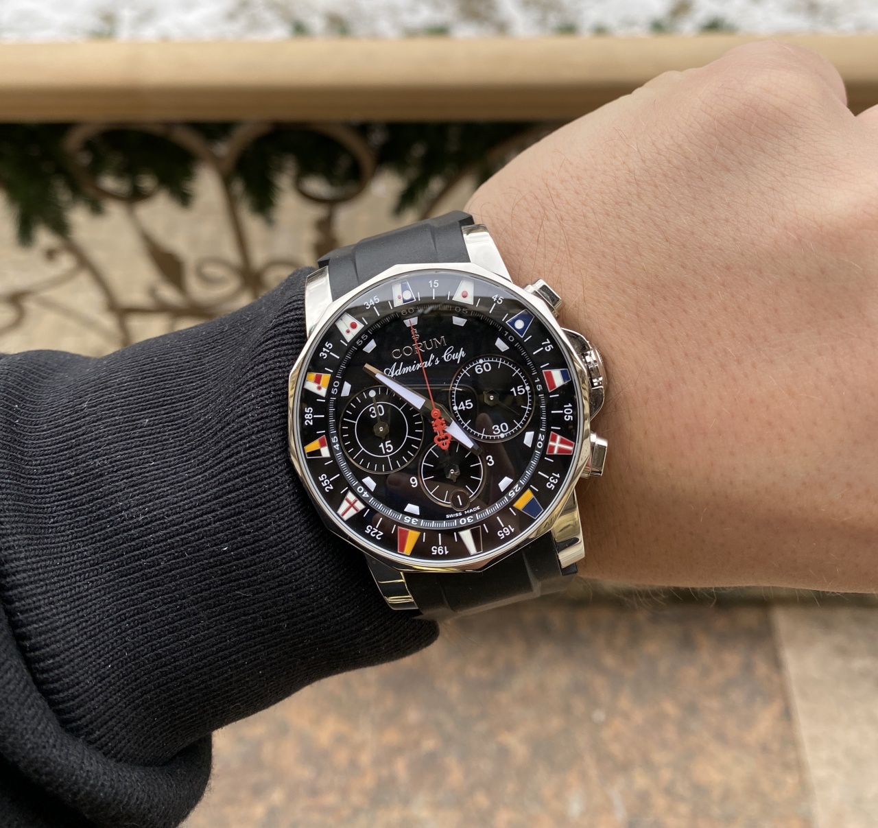 Corum Admirals Cup Chronograph 44 (Каучук, ААА, Черный циферблат )