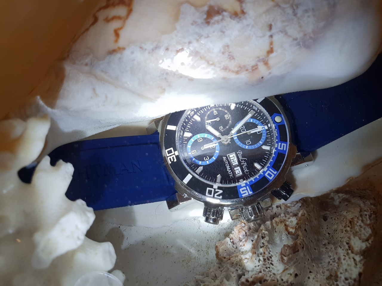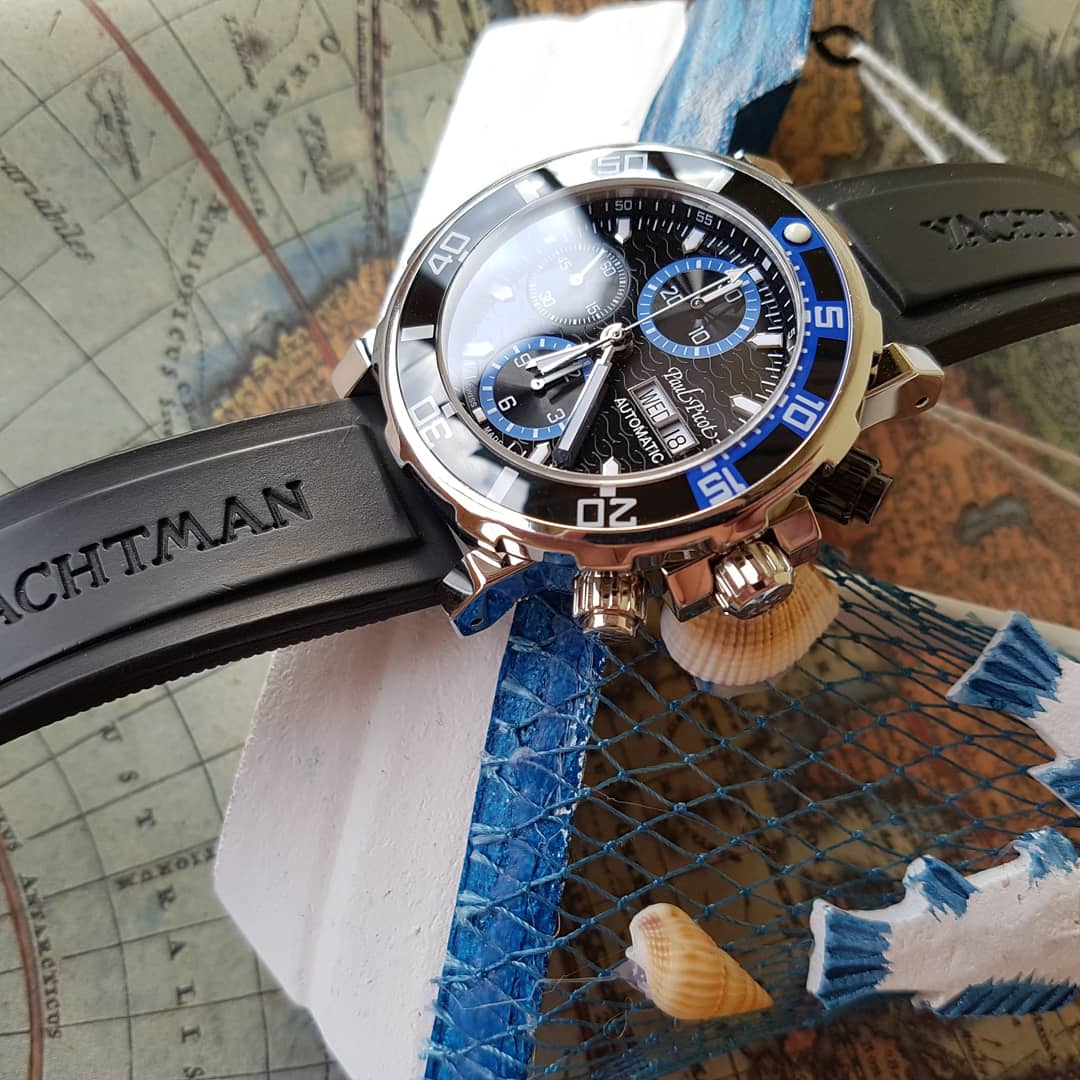 В таком вот бурлящем и живом мире появляется брэнд, который пусть и молод со своей полувековой историей, но горяч и бескомпромиссно прекрасен. #paulpicot сразу заявил о себе во многих направлениях, своим выдающимся и неповторимым дизайном, своей смелостью и талантливыми дизайнерами. И он не побоялся выпустить в море свою линейку #yachtman и не просто мелькнуть, а задержаться в этой суровой стихии, выпустив уже третье поколение Яхтмэн! Если посмотреть внимательно, то секрет успеха кажется очень простым. Один из лучших и надежнейших механизмов хронографа в мире - легендарный топовый Вальжу 7753, высочайшее качество изготовления и лучшие материалы. Сапфировое стекло и сапфировый БЕЗЕЛЬ. Так делают лучшие IWC и BlancpaiN. Великолепный размер 43мм, закручивающиеся кнопки и 200 метров водозащиты. Каучуковый ремень. ПРЕКРАСНЕЙШИЙ люм. А гильеше в виде волн на циферблате, ну разве это не роскошно?) Вам остается лишь дополнить это произведение искусства путь и не большой, но столь же изящной яхтой и наслаждаться морским ветром и путешествиями. А Яхтмэн всегда будет с Вами и будет надежным ориентиром в мире где правят волны, ветер и время.