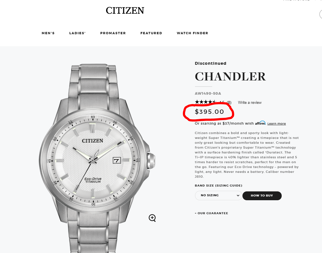CITIZEN Chandeler Eco-Drive Titanium AW1490-50A