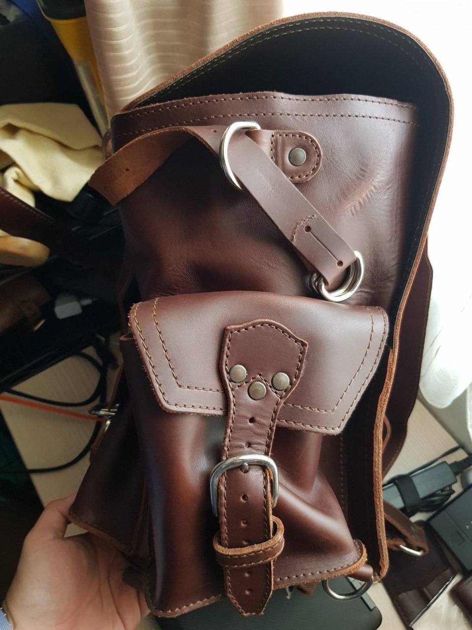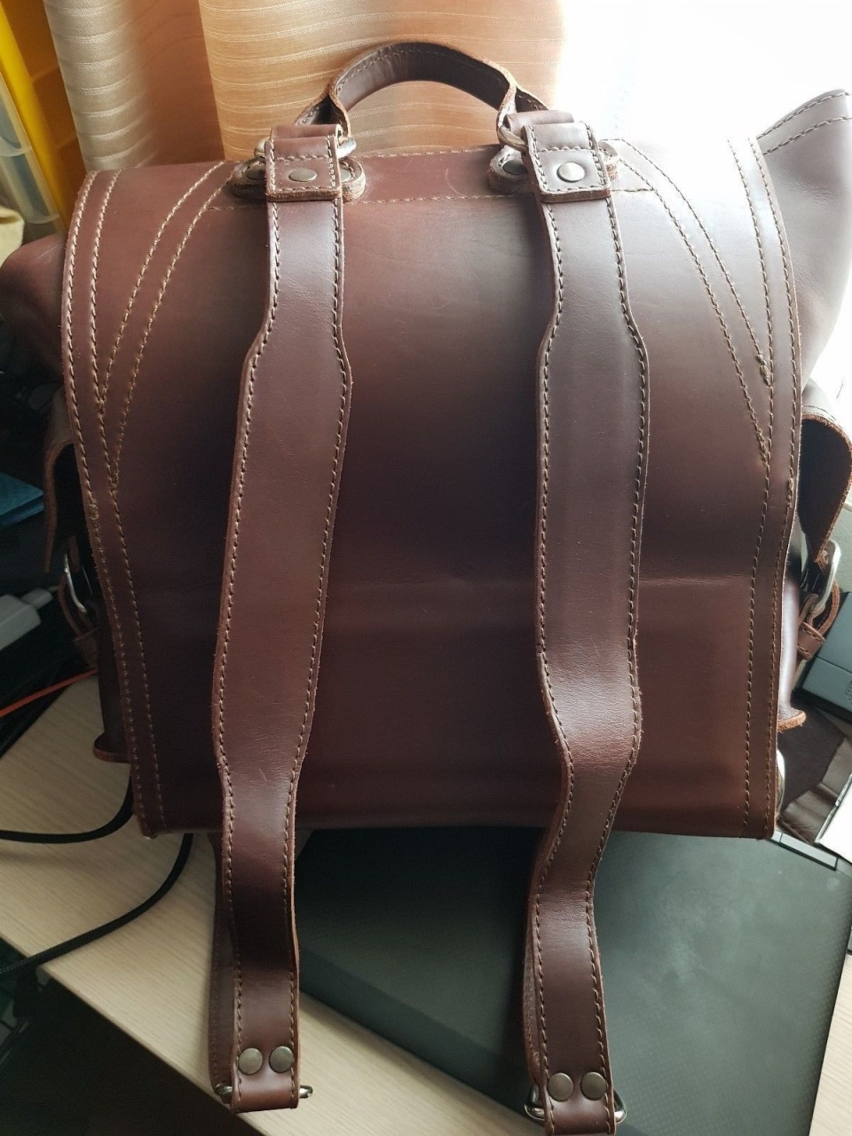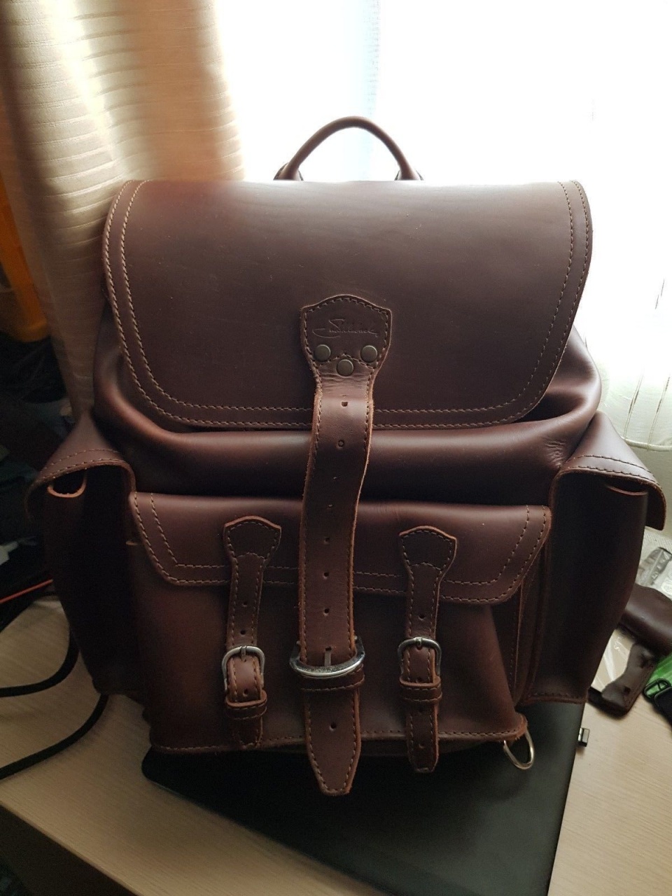 предлагается к продаже кожаный рюкзак американской фирмы SBL, эта единственная фирма в мире, которая предоставляет гарантию на свои кожаные изделия 100 лет. Это не розыгрыш, это действительная 100 летняя гарантия. Каждое изделие отшивается индивидуально из самой дорогой части кожи КРС, её седельной части. Все изделия проходят жесточайший контроль, скидки бывают очень редко, как правило на ограниченное количество. Представленный рюкзак был выпущен лимитированной партией в 2010 году для внутреннего рынка США. Рюкзак пошит из самой лучшей толстой зернистой отборной седельной кожи, в качестве подкладки выбрана свиная кожа, которая благодаря специальной обработки можно протирать мокрой тряпкой, если вы чем то запачкаете рюкзак. На современных изделиях эта технология уже не применяется, а жаль. Рюкзак изумительного каштанового цвета, который в процессе носки будет очень красиво вытираться, приобретая неповторимый винтажный вид. Рюкзак небольшой, много внешних карманов, в которые можно сложить ваши небольшие предметы. Никилерованная фурнитура из хирургической стали прослужит вам очень долгое время. Рюкзак небольшой, подойдёт и девушке. Очень удобные кожаные лямки создают вам дополнительный комфорт и удобство при носке рюкзака. В России нет подобного, будет только у вас. По цене, всего лишь 799 долл можно в рублях по курсу ЦБ. На ебее такой рюкзак продавался года два назад по цене 950 долл, без учёта доставки, которая тоже стоит 100 и более долл. Рюкзак новый, с этикеткой.