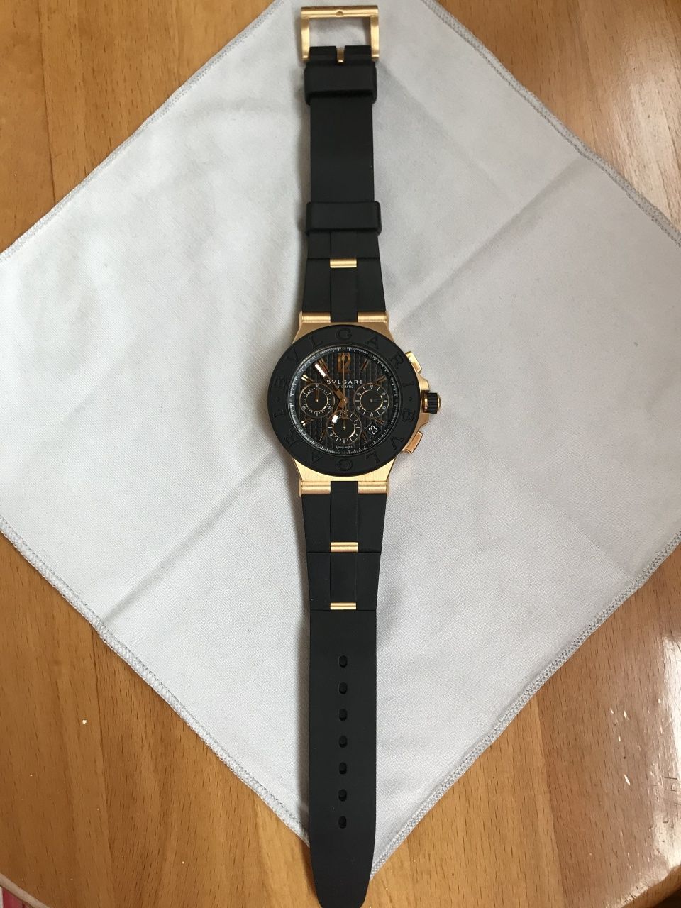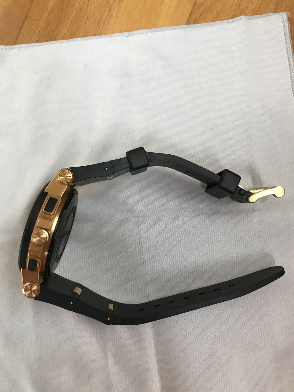 Черный ремешок из каучука с золотыми вставками с классической застежкой из желтого золота