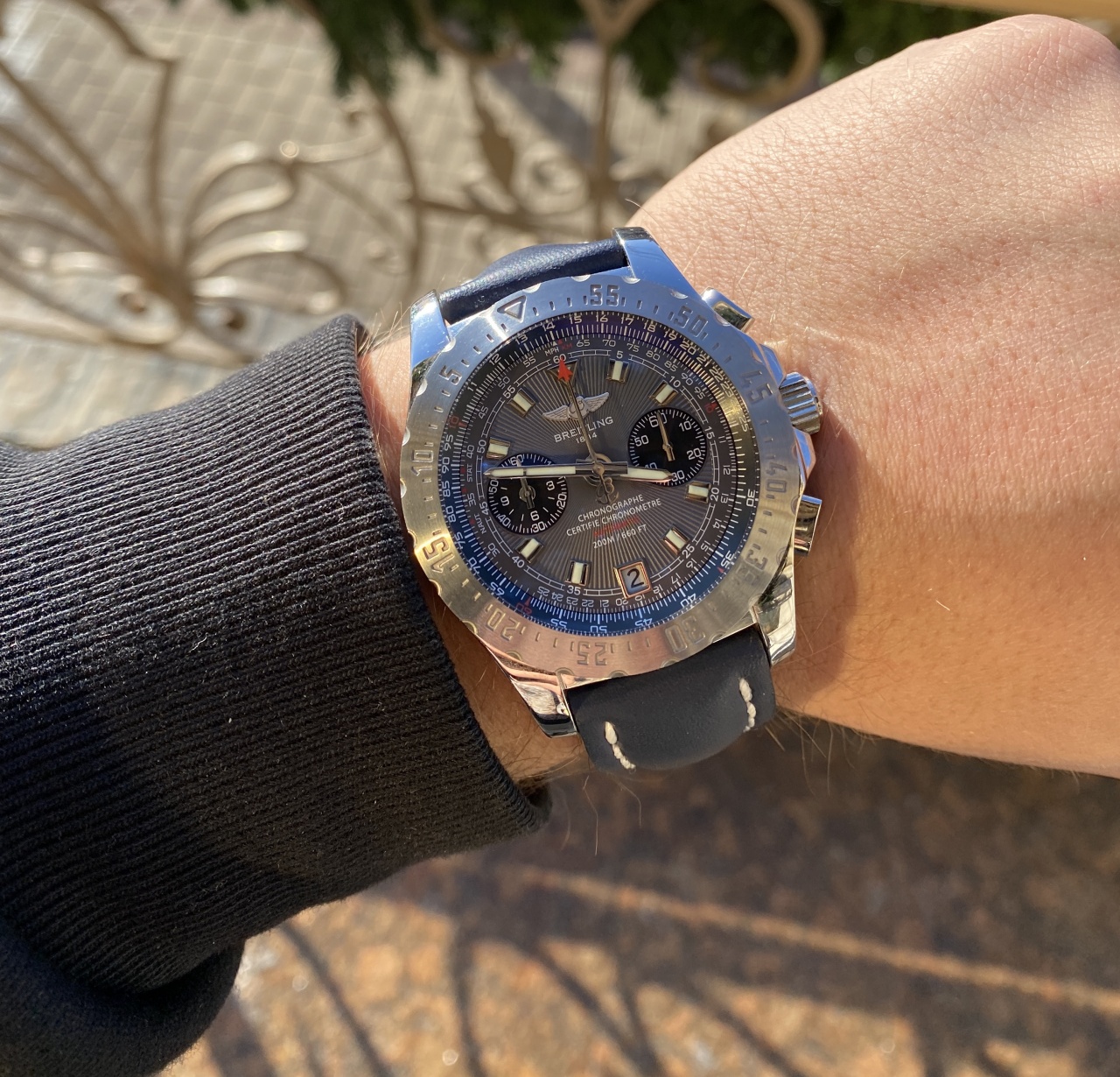Невероятно красивый серый циферблат! Прекрасно гильошированный! Наверное один из самых красивых хронографов по моему мнению у Breitling! Носились крайне редко , ремень вообще как новый