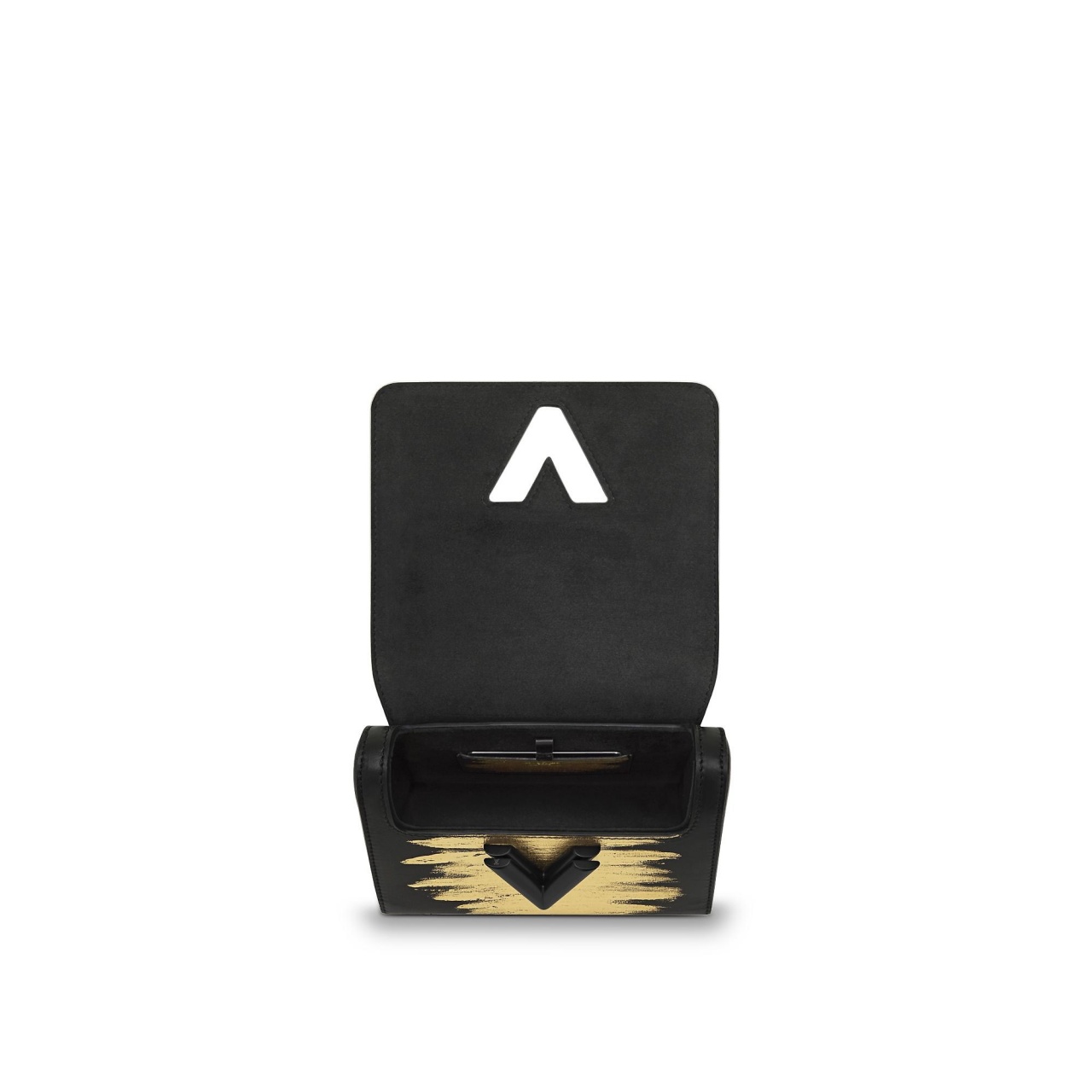 - Знаменитый поворачиваемый замок LV Twist в виде инициалов LV выполненный из металла черного цвета