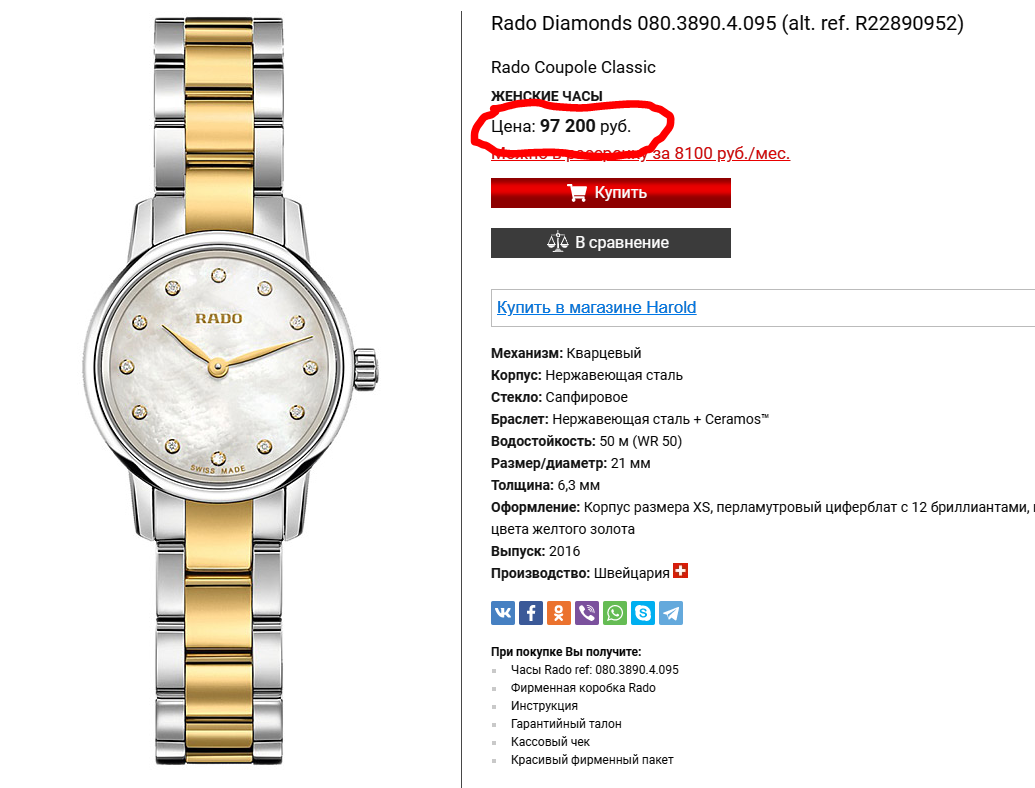 [Женские] RADO Coupole Bicolor R22890952. Биколор / Браслет / d=21mm / 12 бриллиантов - Часовой форум Watch.ru