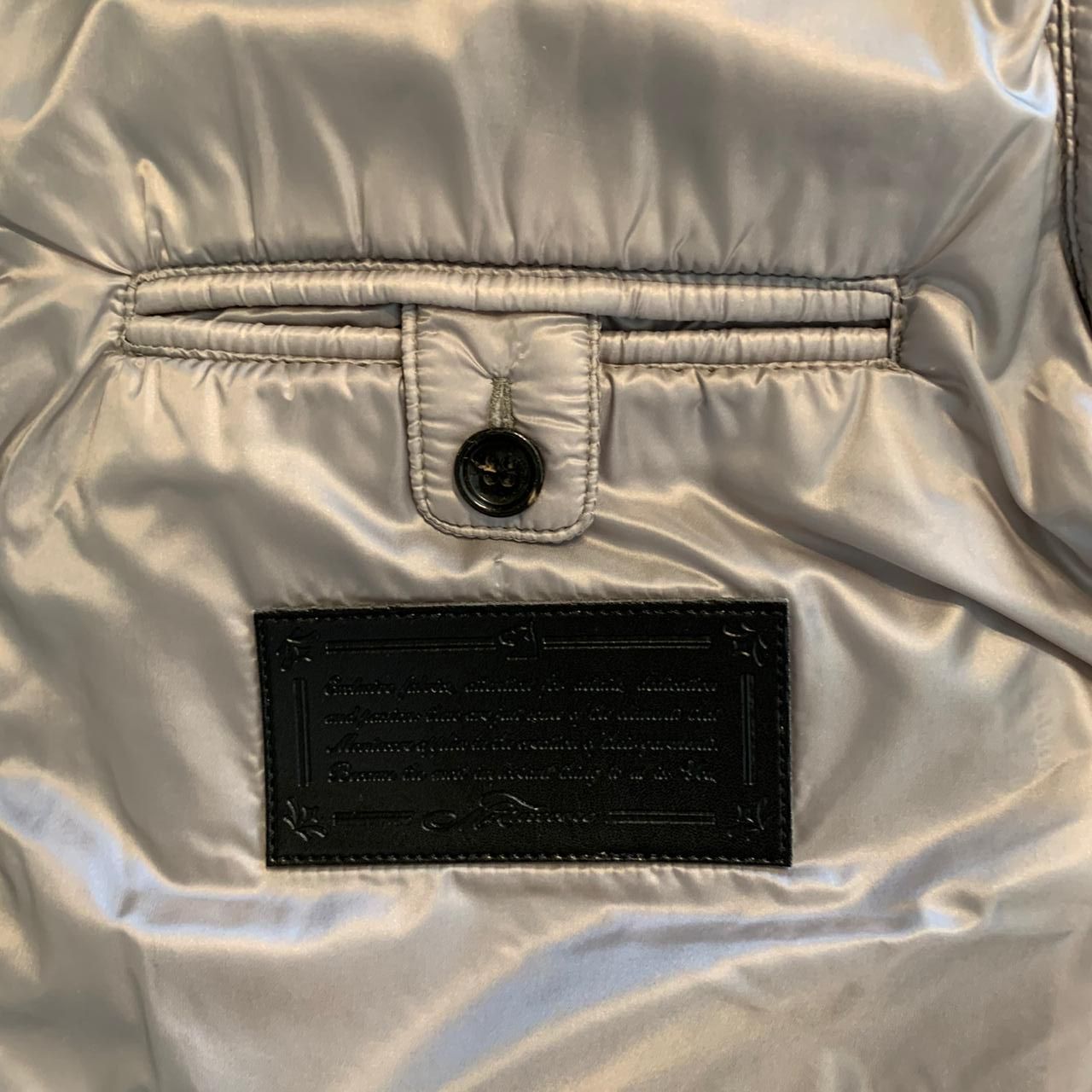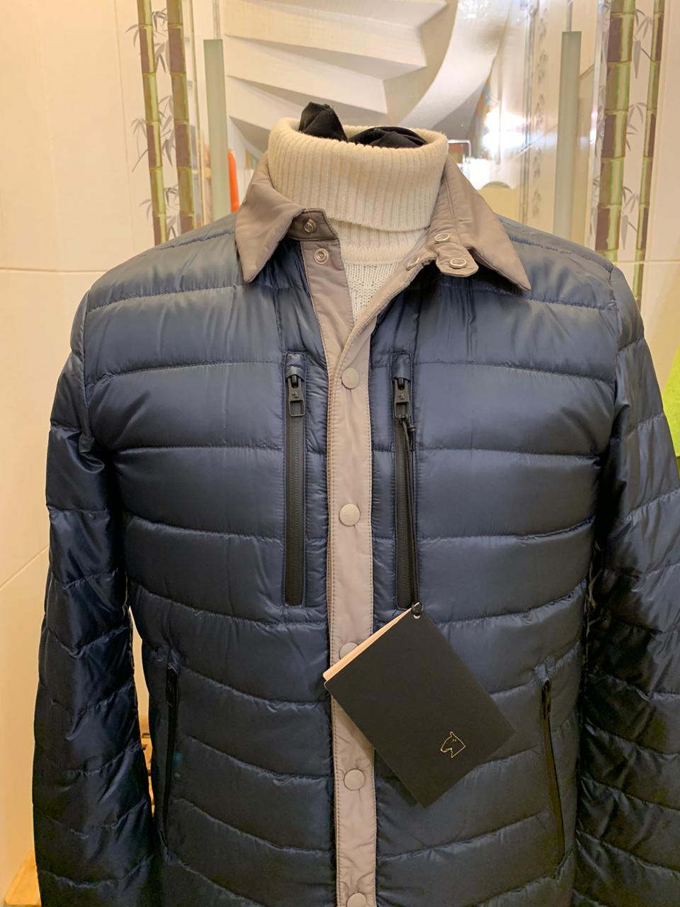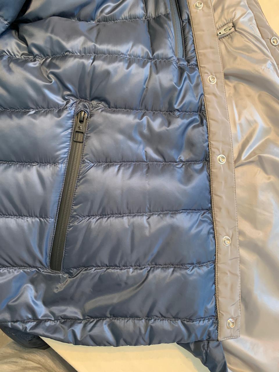 Продается новый мужской пуховик на переходный период бренда MONTECORE превосходного исполнения, стеганый узор, логотип, темно-синего цвета, классический воротник, воротник и передняя планка контрастного бежевого цвета, однобортная модель, кнопки, множество карманов, боковые прорезные карманы на молнии, на груди два кармана на молнии, внутри два кармана: на молнии и пуговице, внутри на гусином пуху, длина 70 см, состав: 100% полиамид, все бирки и запасная фурнитура прилагаются, гарантированный оригинал, размер 52(IT), страна бренда Италия.
