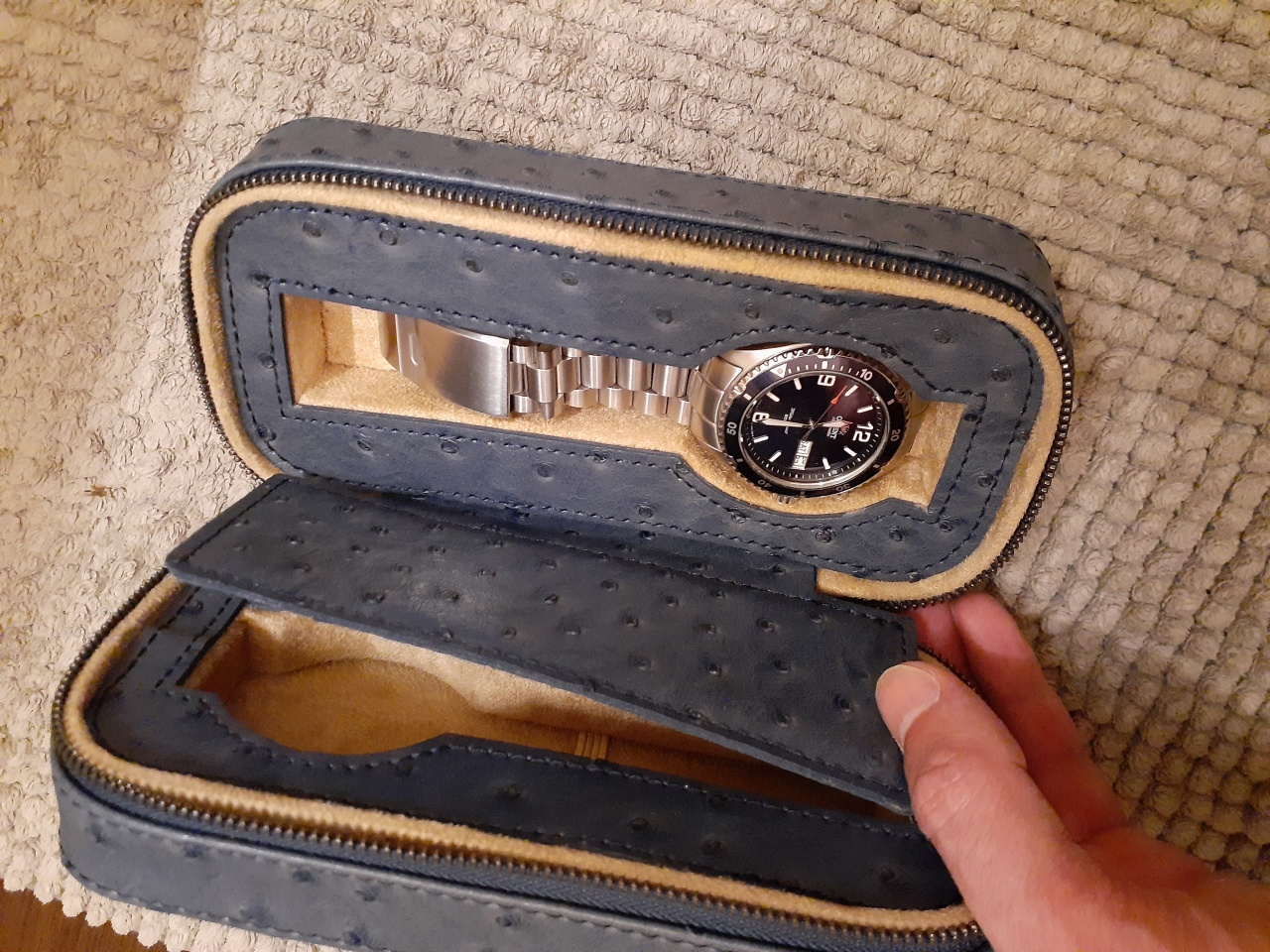 Литой браслет 22 мм с мелким плетением внутри и футляр для двух часов