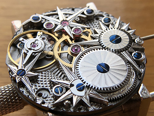 Что касается механизма часов, мы выбрали швейцарский Unitas 6498-1, но с гильошированными мостами и покрытый белым золотом. Декорирование выполнит Берлинский часовой ювелир Максимилиан Шлайн.