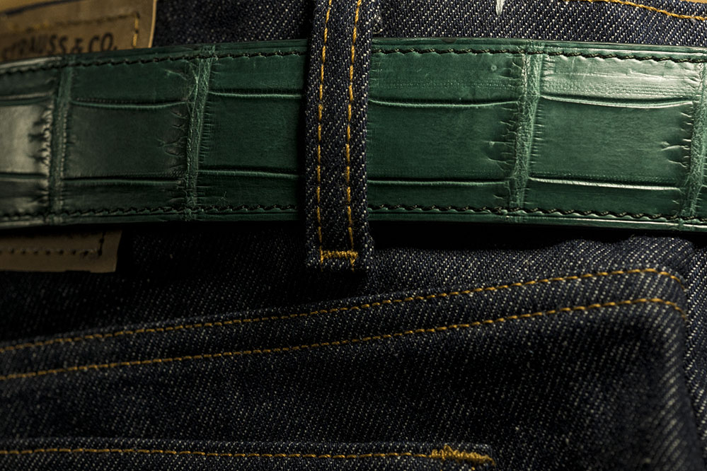 ROLKO – крокодиловая коллекция. Ремень для джинсов зеленого цвета