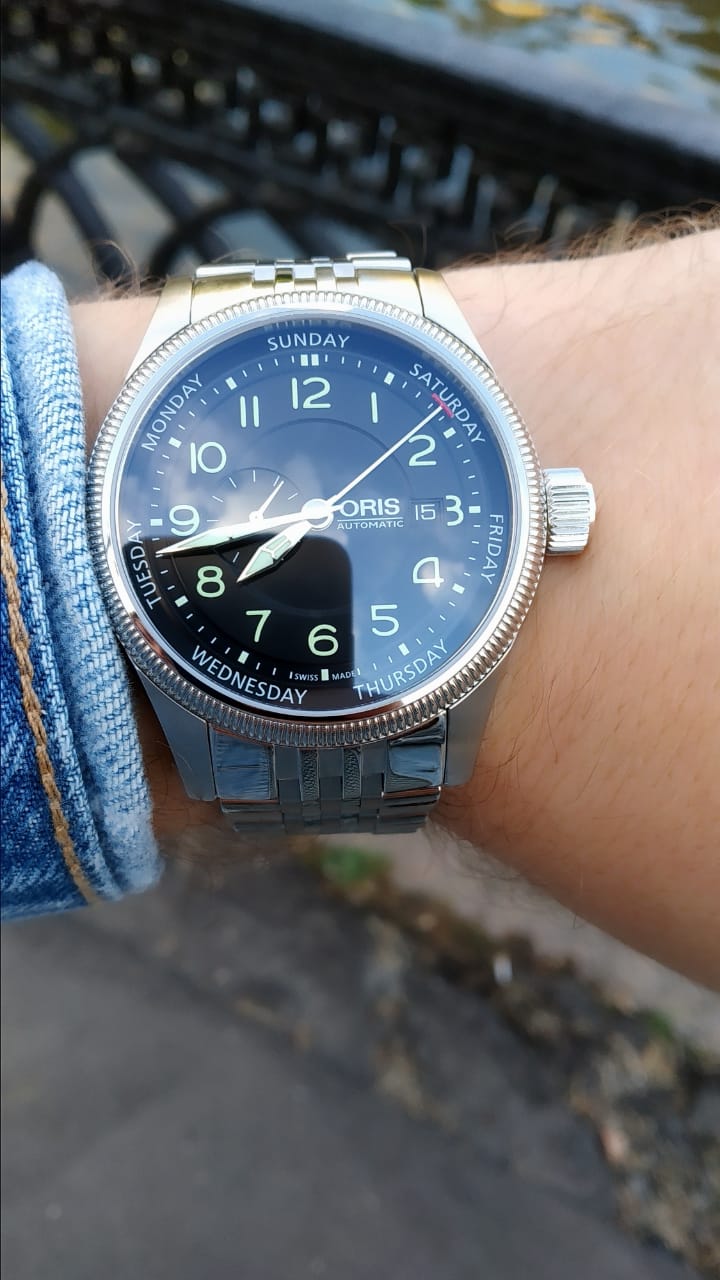 Механизм: механический с системой автоматического подзавода, калибр Oris 745, запас хода 38 часов, 28 камней.