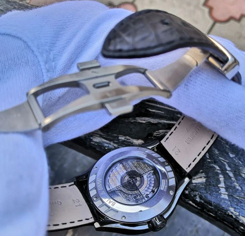 Стальной корпус с износостойким покрытием PVD, ремешок из аллигатора высочайшей выделки.