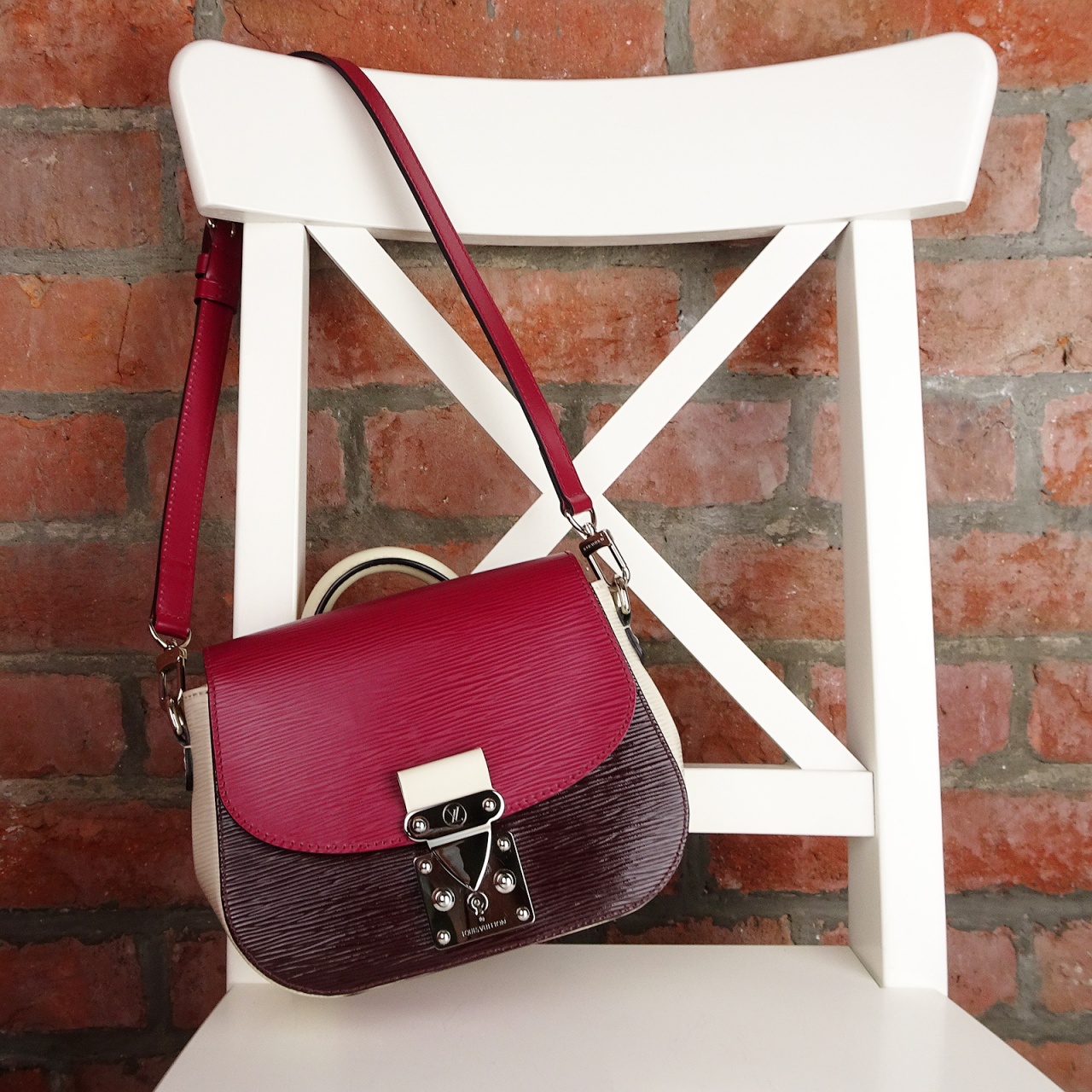 "В гламурном сочетании гладкой кожи и кожи Epi сумка Eden это изысканное дополнение к любому гардеробу. Роскошная и красочная модель обратит на себя внимание, идеально подойдет для любого случая и украсит любой наряд. Знаменитые символы Дома Louis Vuitton - замок S-lock в стиле замков винтажных дорожных сундуков, а также изящная ручка в стиле сумок Steamer завершают неповторимый и элегантный образ."