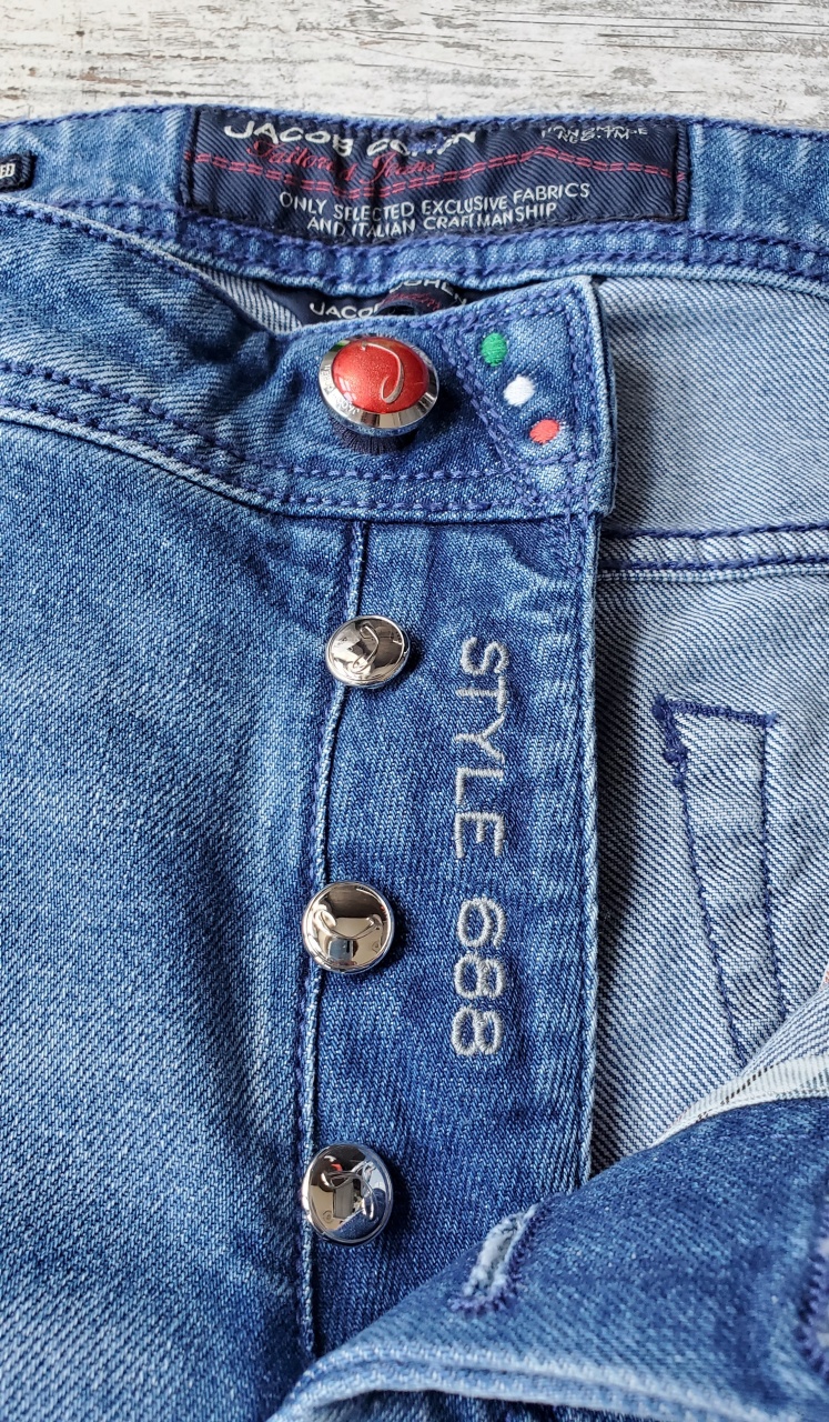 Цвет: Светло - синий. Модель: 688Comf. Застёгивается на фирменные пуговицы из серебра с логотипом Jасоb Соhеn.