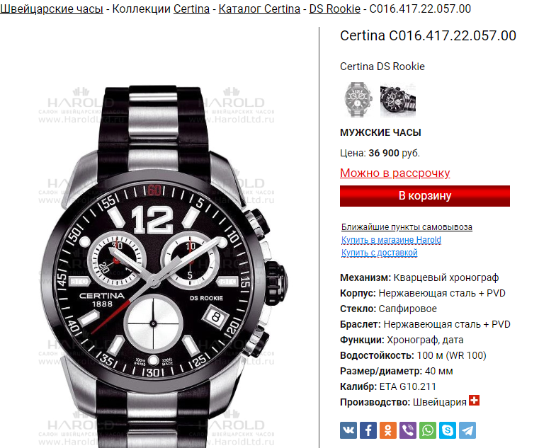 Мужские наручные часы CERTINA DS Rookie Chronograph C016-417-22-057-00