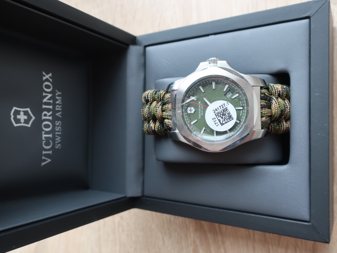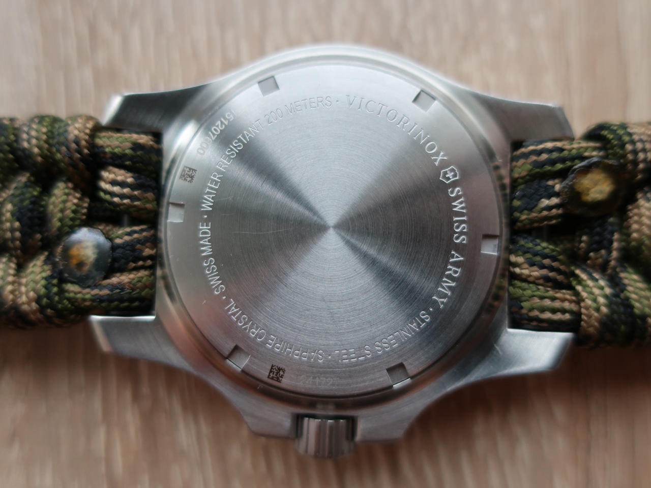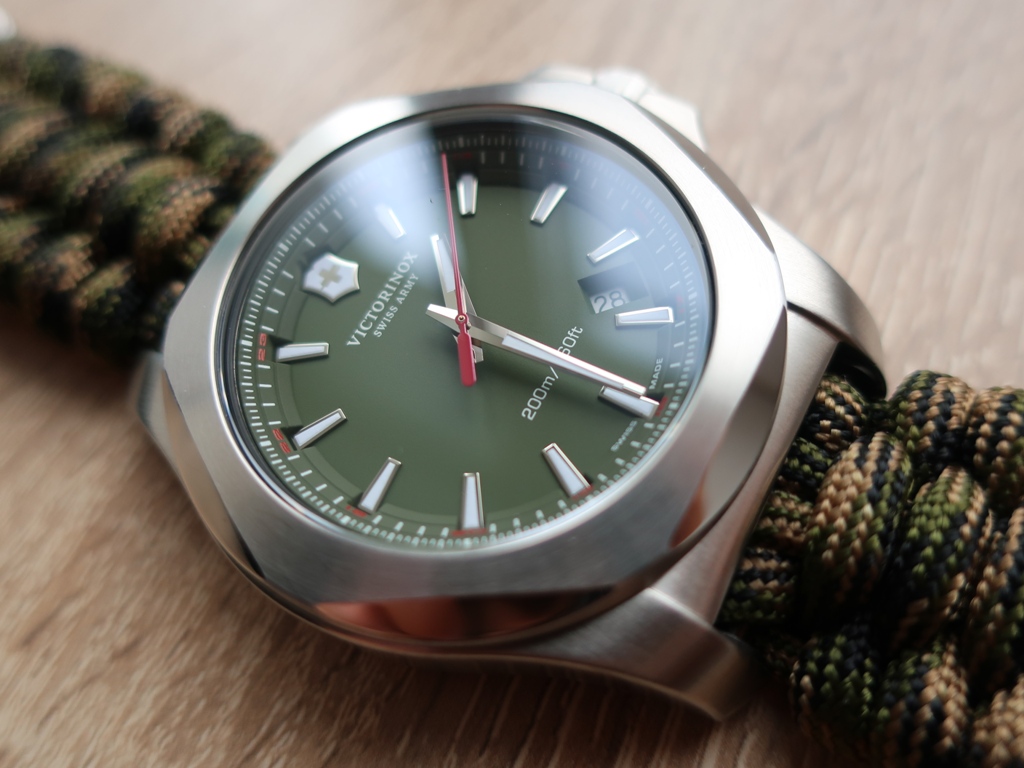 Мужские швейцарские наручные часы Victorinox Swiss Army 241727.1, коллекция I.N.O.X. Paracord. Swiss Made. Швейцарский кварцевый механизм Ronda 715 с функцией индикации заряда (EOL), дополнительно усиленный. Индикация даты. Усиленный стальной корпус диаметром 43 мм, завинчивающаяся заводная головка с максимальной защитой, монолитный циферблат цвета хаки, выточенные индексы, люминесцентное покрытие стрелок и индексов, утолщенное сапфировое стекло 2,3 мм с тройным антибликовым покрытием, водонепроницаемость до 200 м. Скошенный шестиугольный безель. Уникальный спасательный браслет Naimakka из паракорда. Нейлоновая стропа Naimakka используется в армии США в парашютах для спуска тяжелой армейской техники, 1 стропа выдерживает нагрузку в 250 кг. В случае необходимости браслет можно расплести и получить 2,5 м стропы Naimakka, которую можно использовать множеством способов: поставить палатку, перекинуть груз, зашнуровать обувь, отбуксировать лодку, сплести силки или рыболовную сеть и даже добыть огонь! Специальная система стальных петель и нейлонового ремешка, удерживающая плетеный браслет на запястье, позаимствована у парашютных застежек - ремешок легко затянуть, подогнав по размеру.