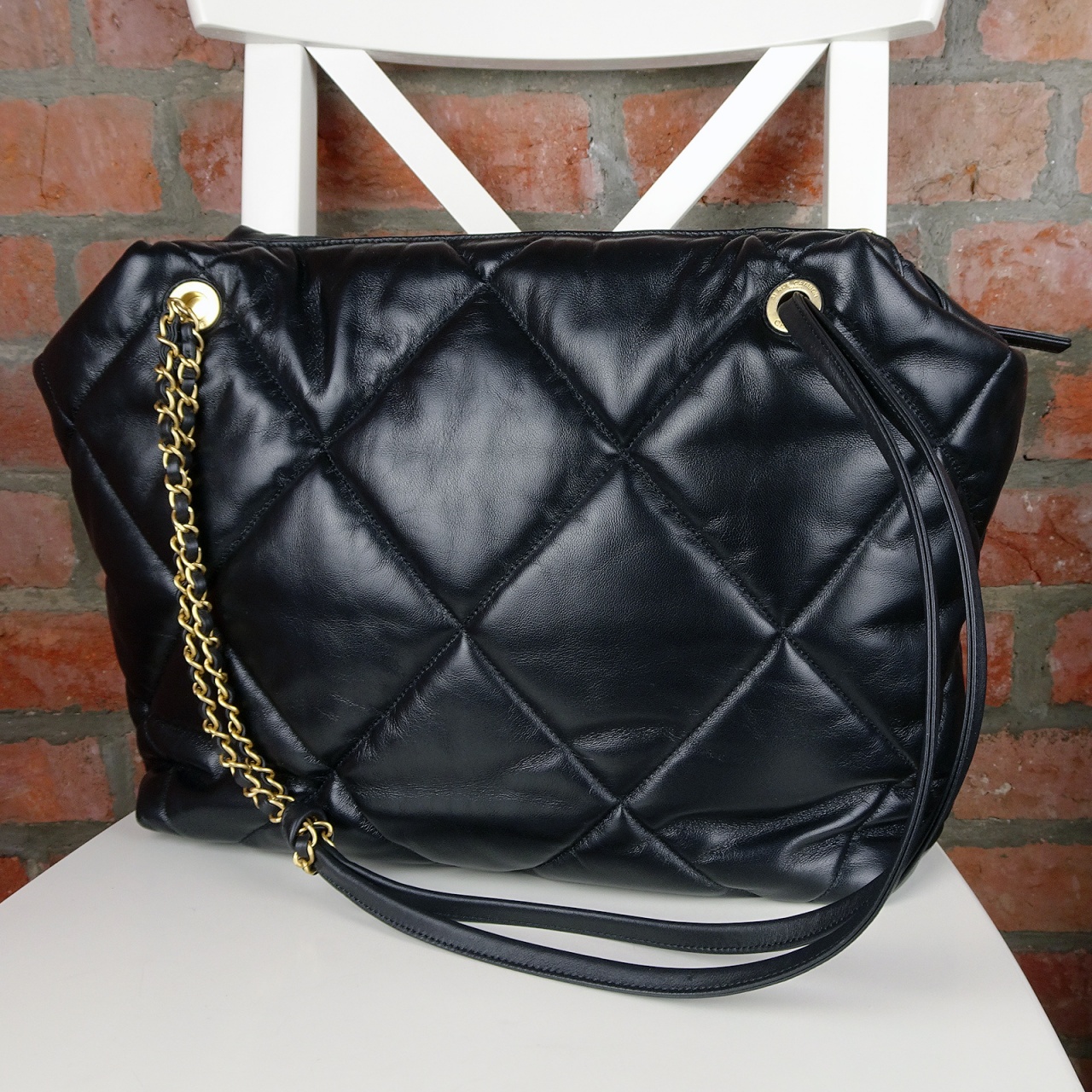 Модный тренд 2019/2020 года - Louis Vuitton выпустил коллекцию Monogram Giant где представил свой классический узор-монограмму LV в гигантском шрифте. Bottega Veneta выпустила коллекцию с гигантским плетением intrecciato из очень широких полос кожи. Ну и в Chanel не отстали - и представили несколько моделей сумок в которых увеличили один из своих самых узнаваемых символов отделки, заменяющий Chanel монограммы - а именно культовую прострочку ромбом Matelassé. Получилось очень круто и эффектно.