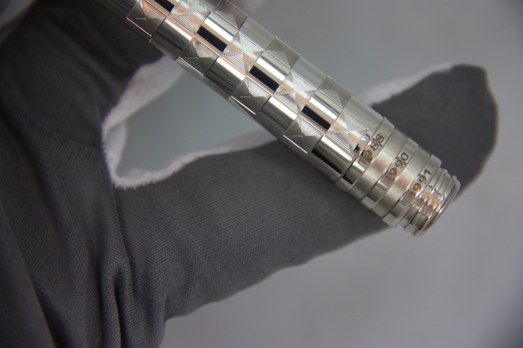 Корпус ручек Champion выполнен из серебра и украшен гравировкой в виде двух скрещенных финишных флагов, а кольца, опоясывающие корпус и колпачок ручек Montegrappa Ayrton Senna, декорированы узором, напоминающим протектор шин. Желтая вершина колпачка ручек Montegrappa Ayrton Senna повторяет цвет шлема Айртона Сенны, клип выполнен в форме болида Формулы 1 с двойной буквой S на антикрыле - эмблемой Сенны. Кроме этого, на колпачке нанесена подпись Сенны, выполненная в огненно-красном цвете и выгравированы даты рождения и смерти этого величайшего автогонщика.