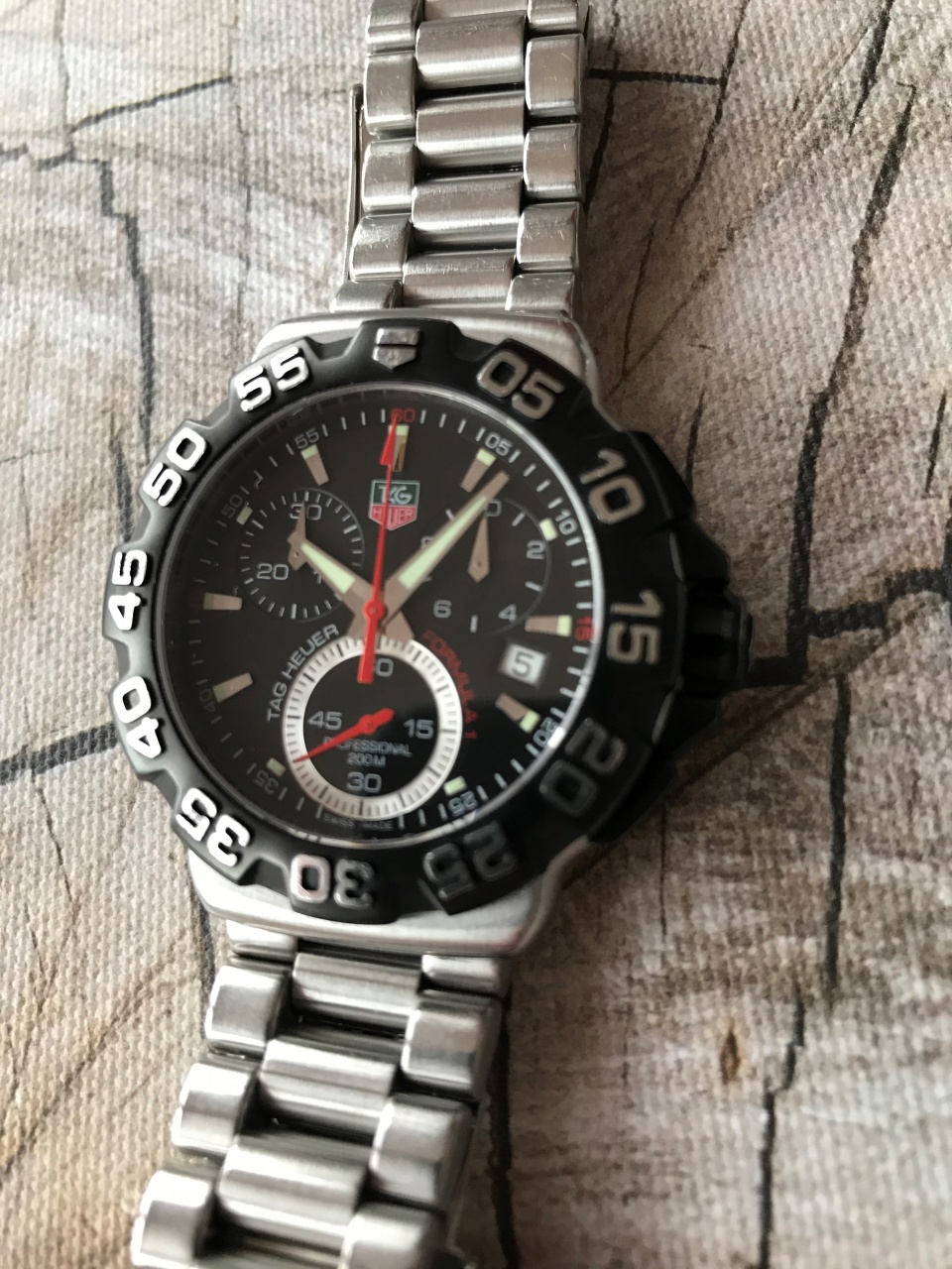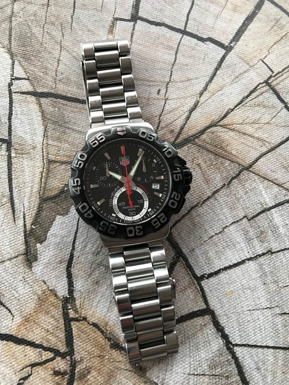 В наличии яркие, спортивные часы Tag Heuer Formula 1 Chronograph CAH1110.BA0850. Присутствует легкие следы эксплуатации, ничего критичного. Полный комплект: Часы, внешняя коробка, шкатулка, инструкция, гарантийная карта, бирки. Установлен новый элемент питания.