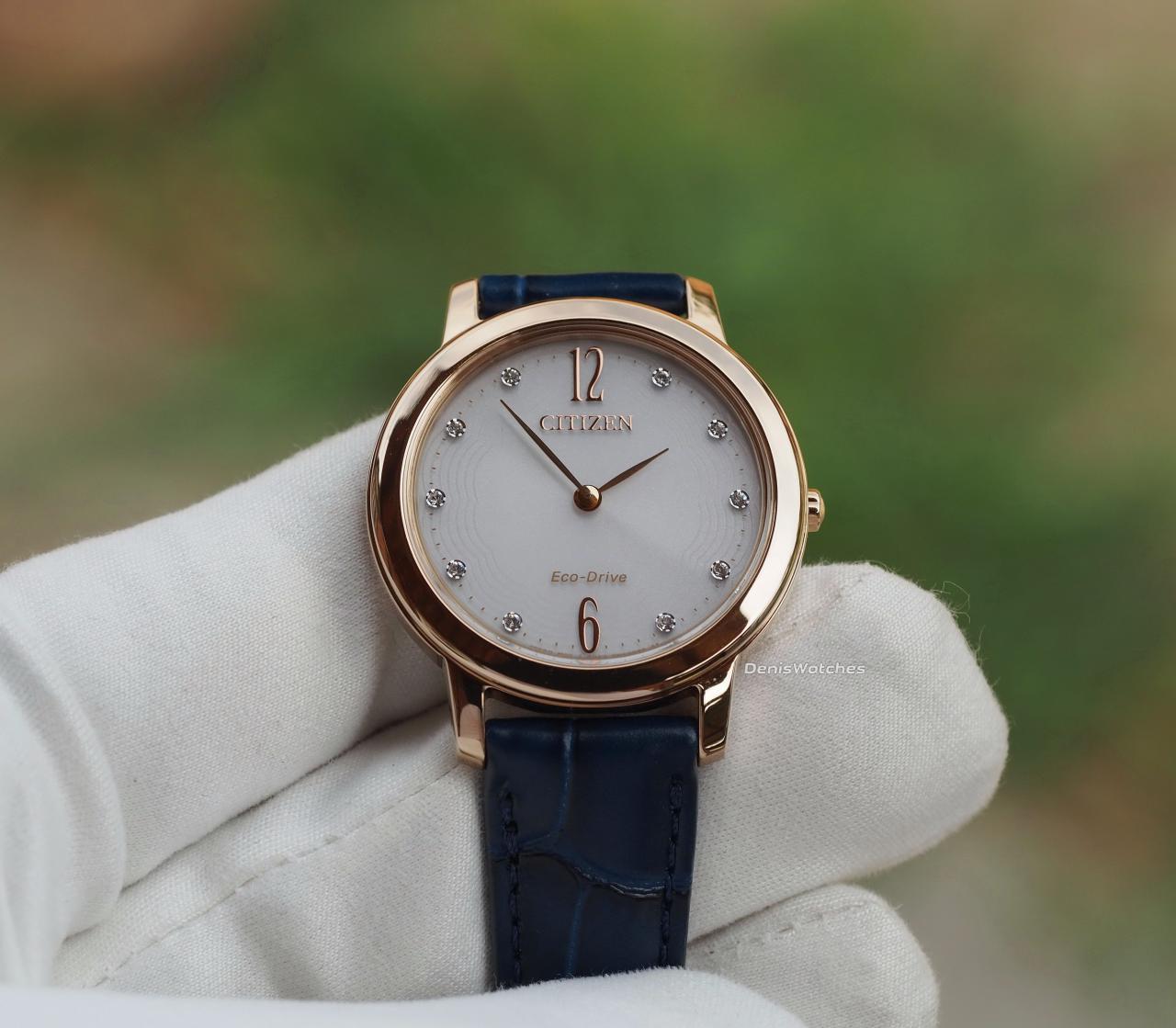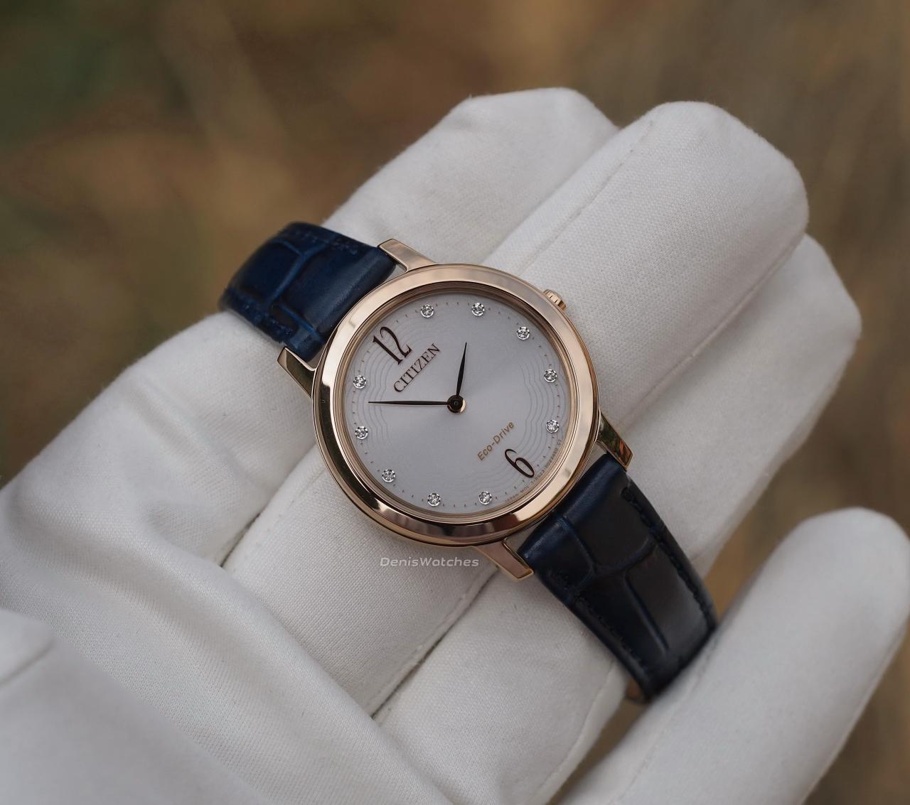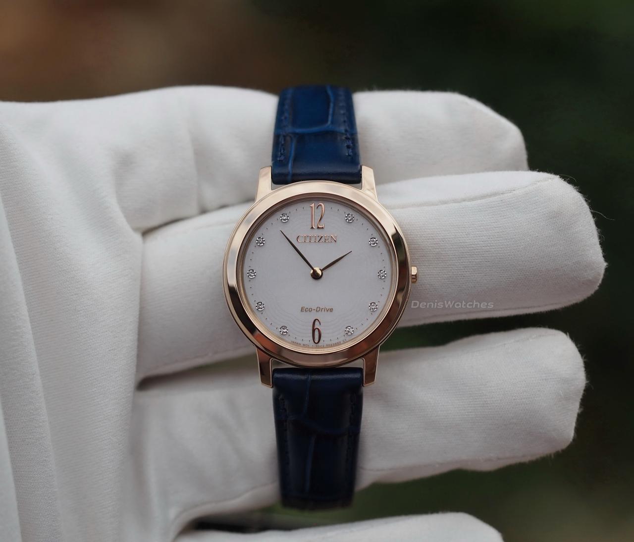 Элегантные женские часы с кристаллами Swarovski и красивым темно-синим ремнем