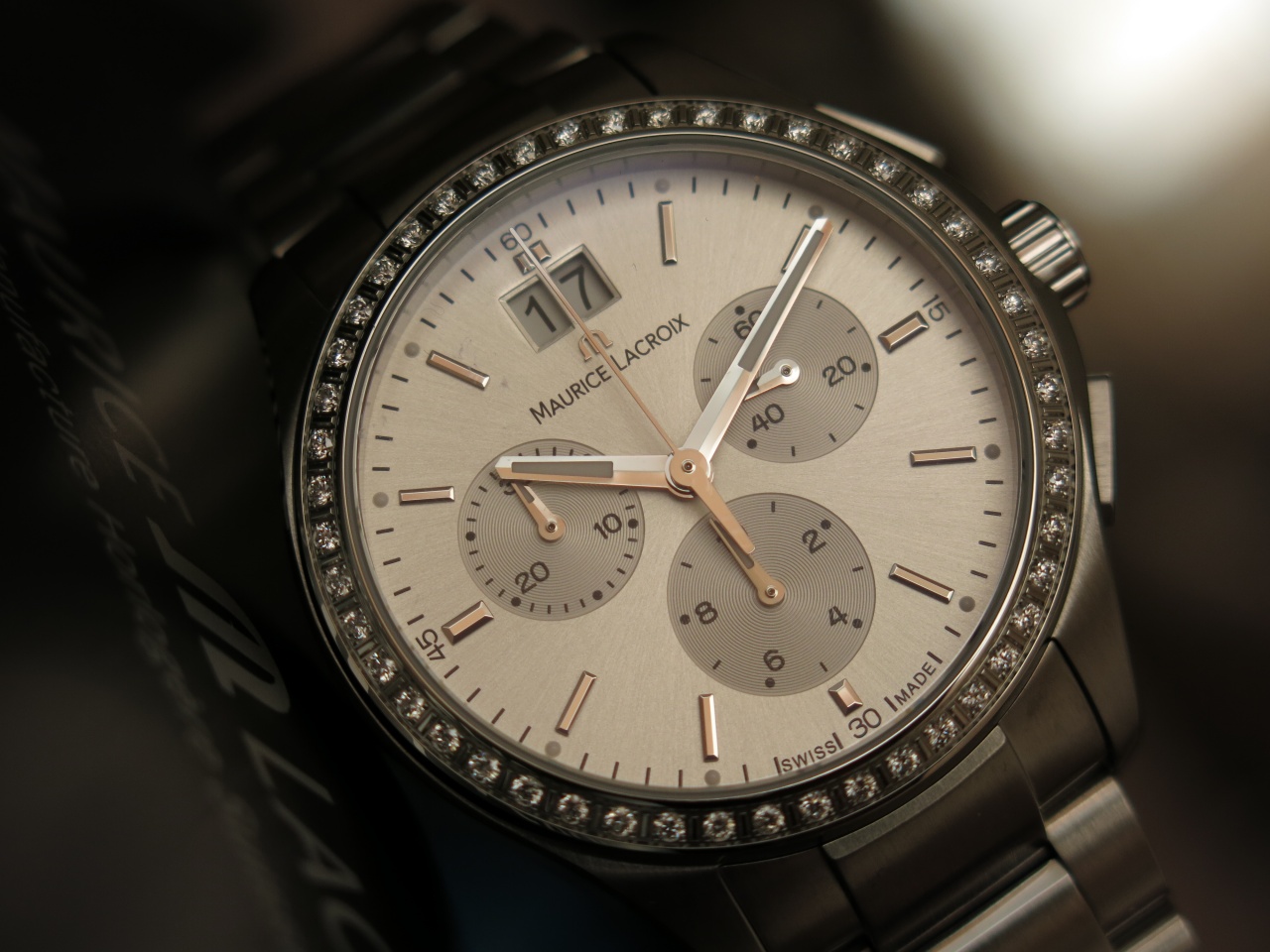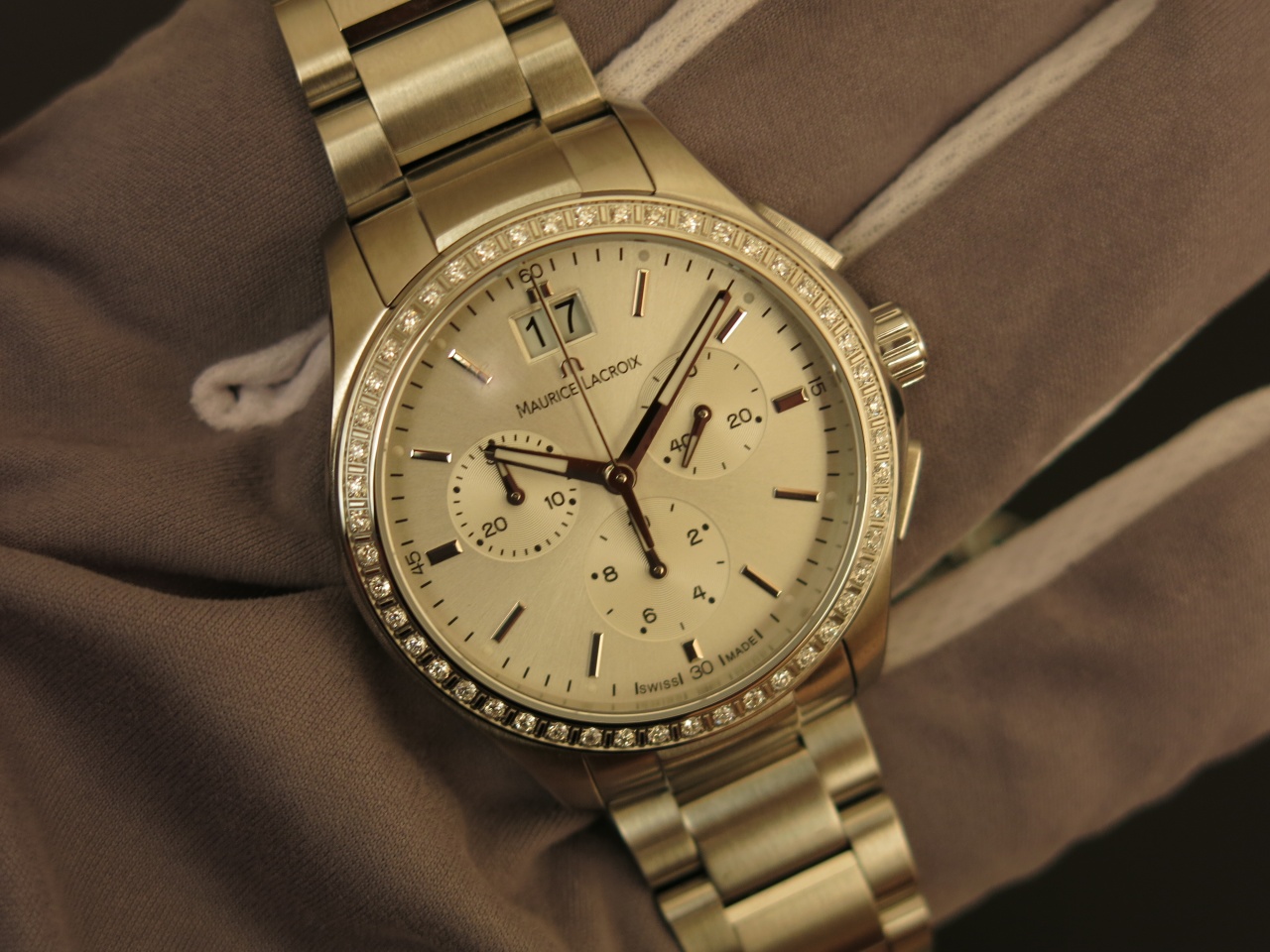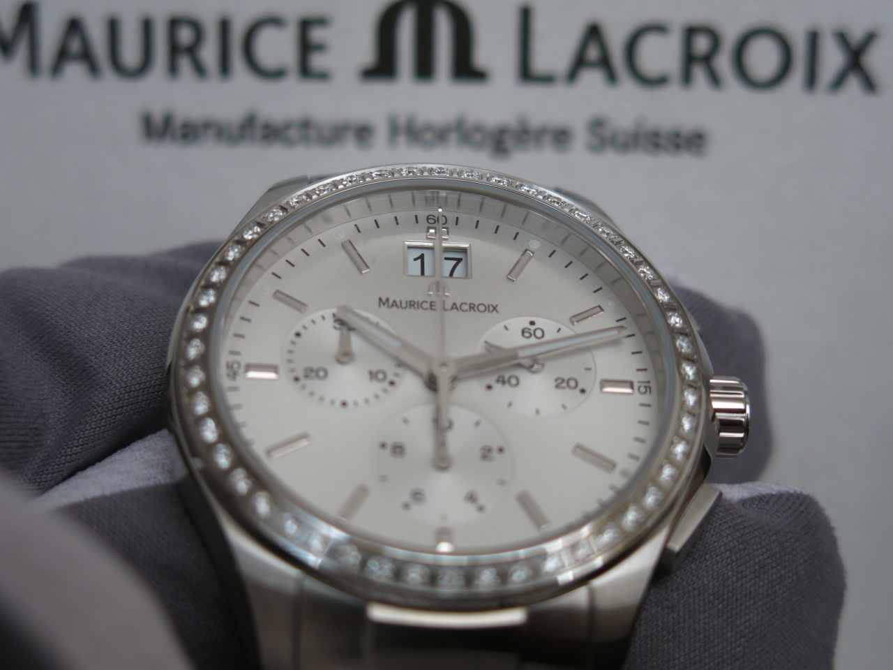 В продаже шикарный женский хронограф с 48 крупными бриллиантами maurice lacroix 1057-sd502-130-1.