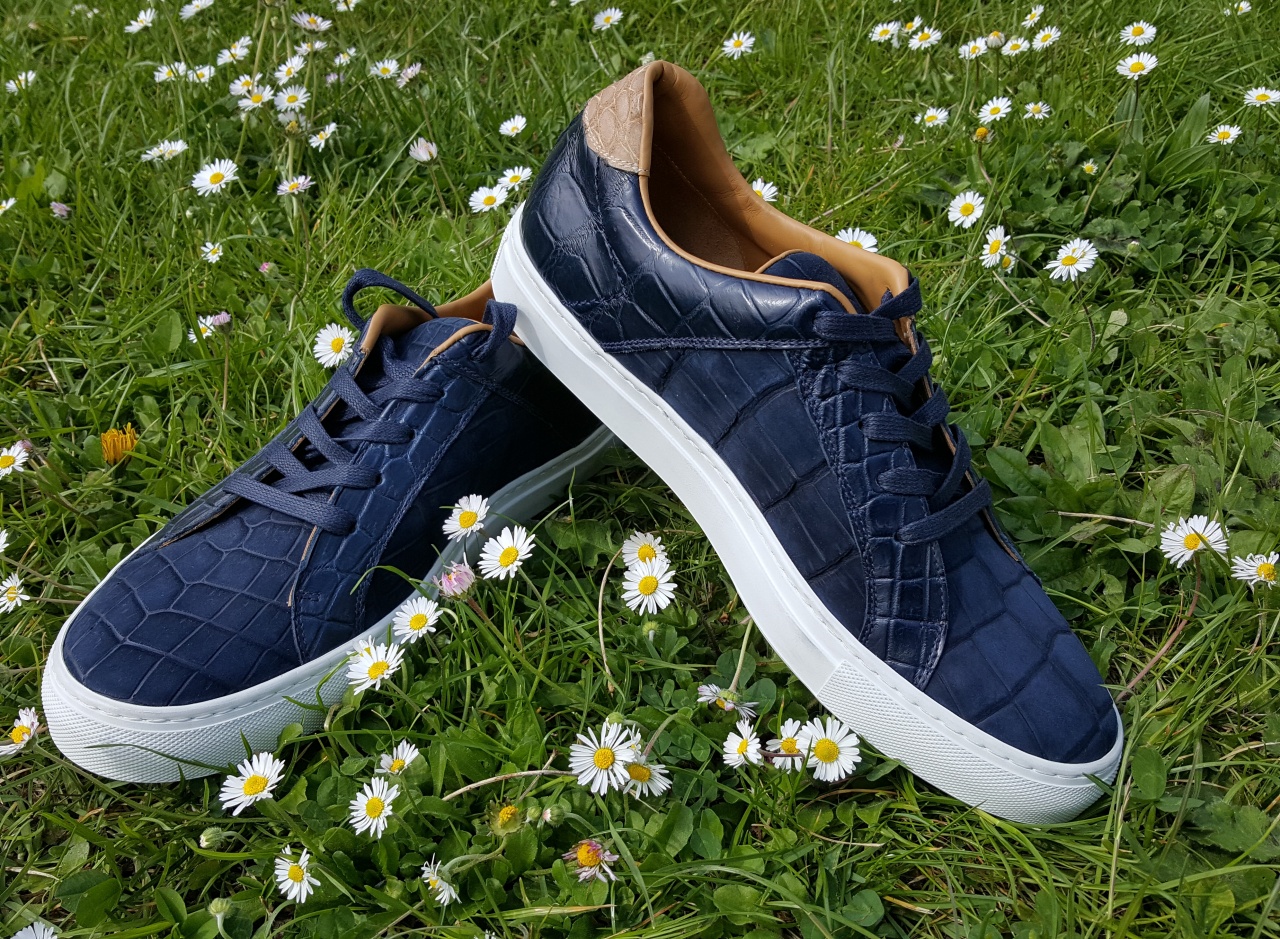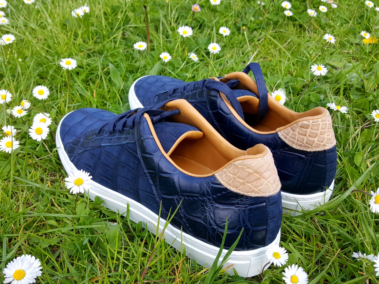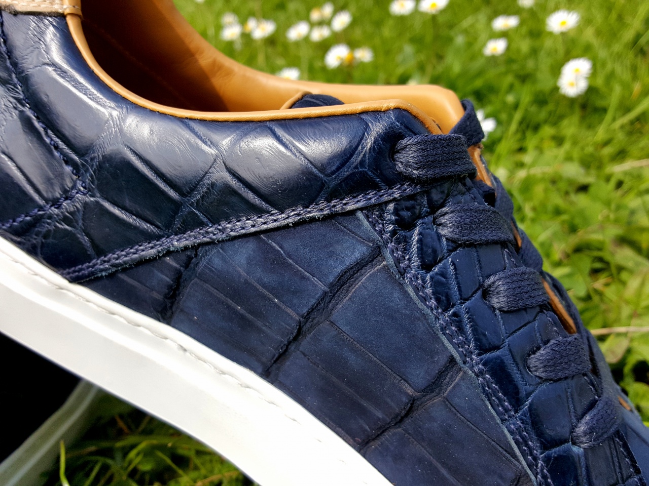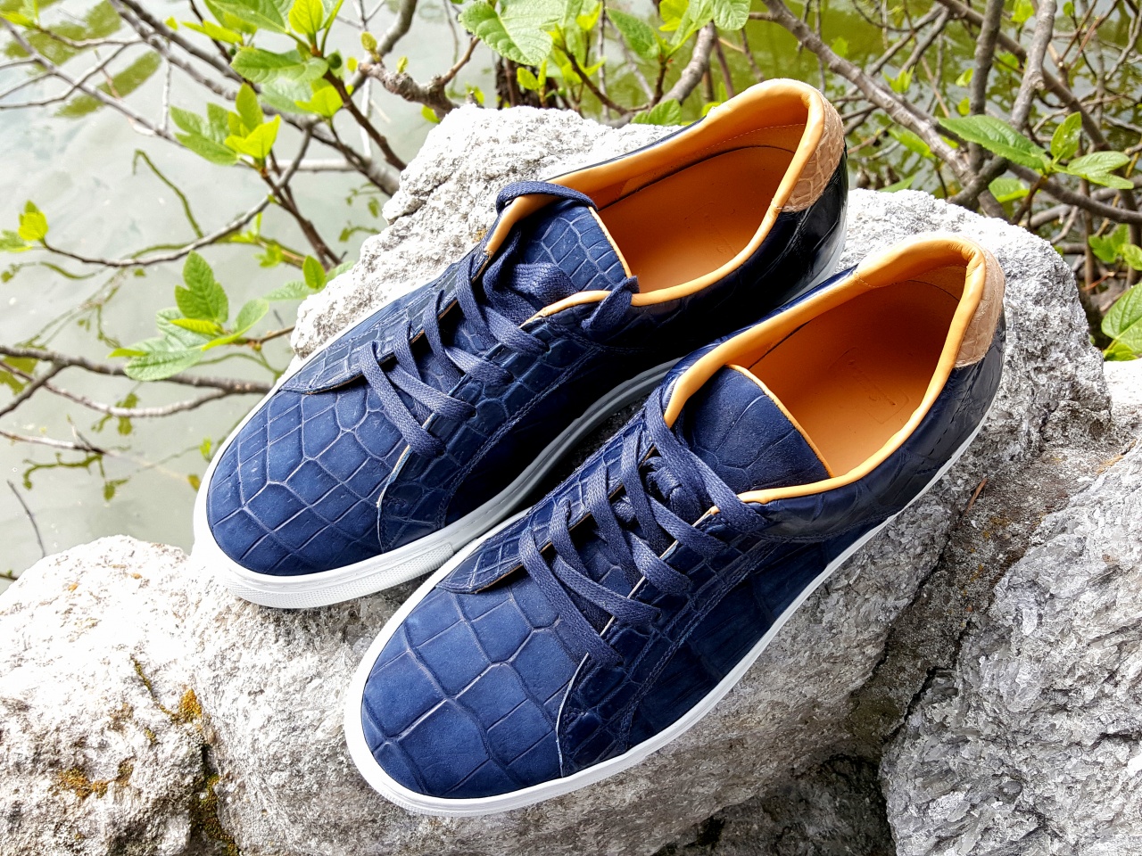 ЛЮКСОВЫЕ КЕДЫ ИЗ КОЖИ НИЛЬСКОГО КРОКОДИЛА ШЛИФОВАННОЙ "ПОД ЗАМШУ". ИТАЛИЯ