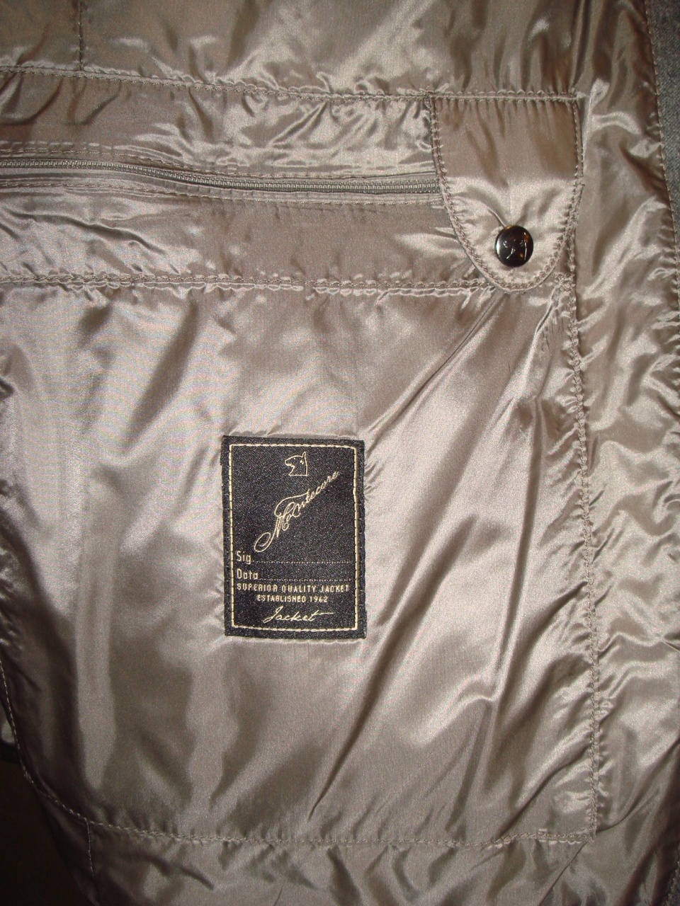 Продается новая стильная шерстяная утепленная мужская куртка, стилизованная под пиджак, бренда MONTECORE превосходного исполнения, светло-серого цвета, логотип, съемная ветрозащитная планка на молнии, утеплитель THERMORE, с элементами ручной работы, кожаная отделка воротника, молния с двойным ходом и роговые пуговицы с логотипом бренда, наружные накладные карманы, четыре внутренних кармана на молнии с клапанами, состав: 100% шерсть Virginia wool super 120S (фабрика Vitale Barberis Canonica), все бирки прилагаются, гарантированный 100% оригинал, размер 54 (IT), производство Италия.